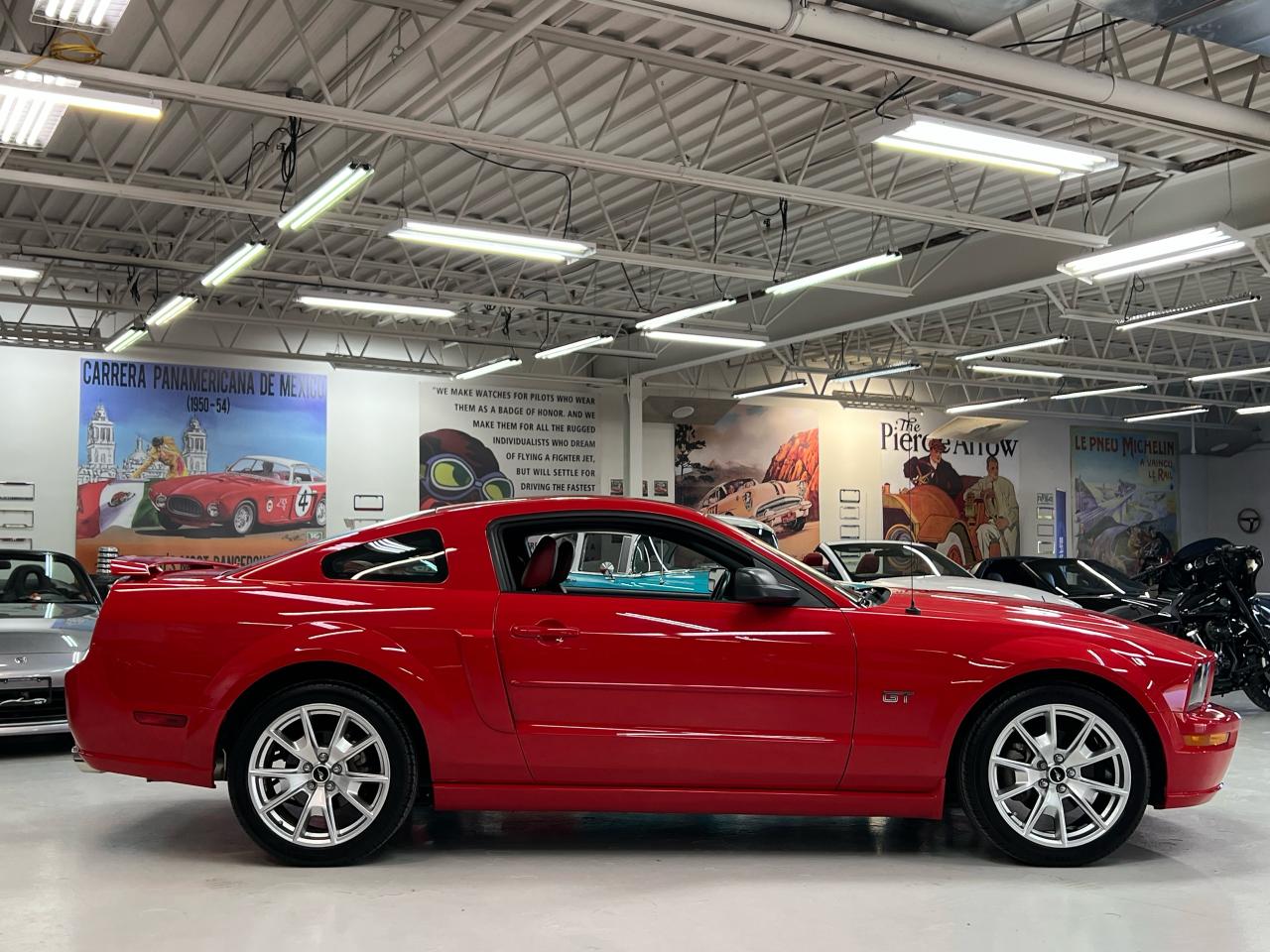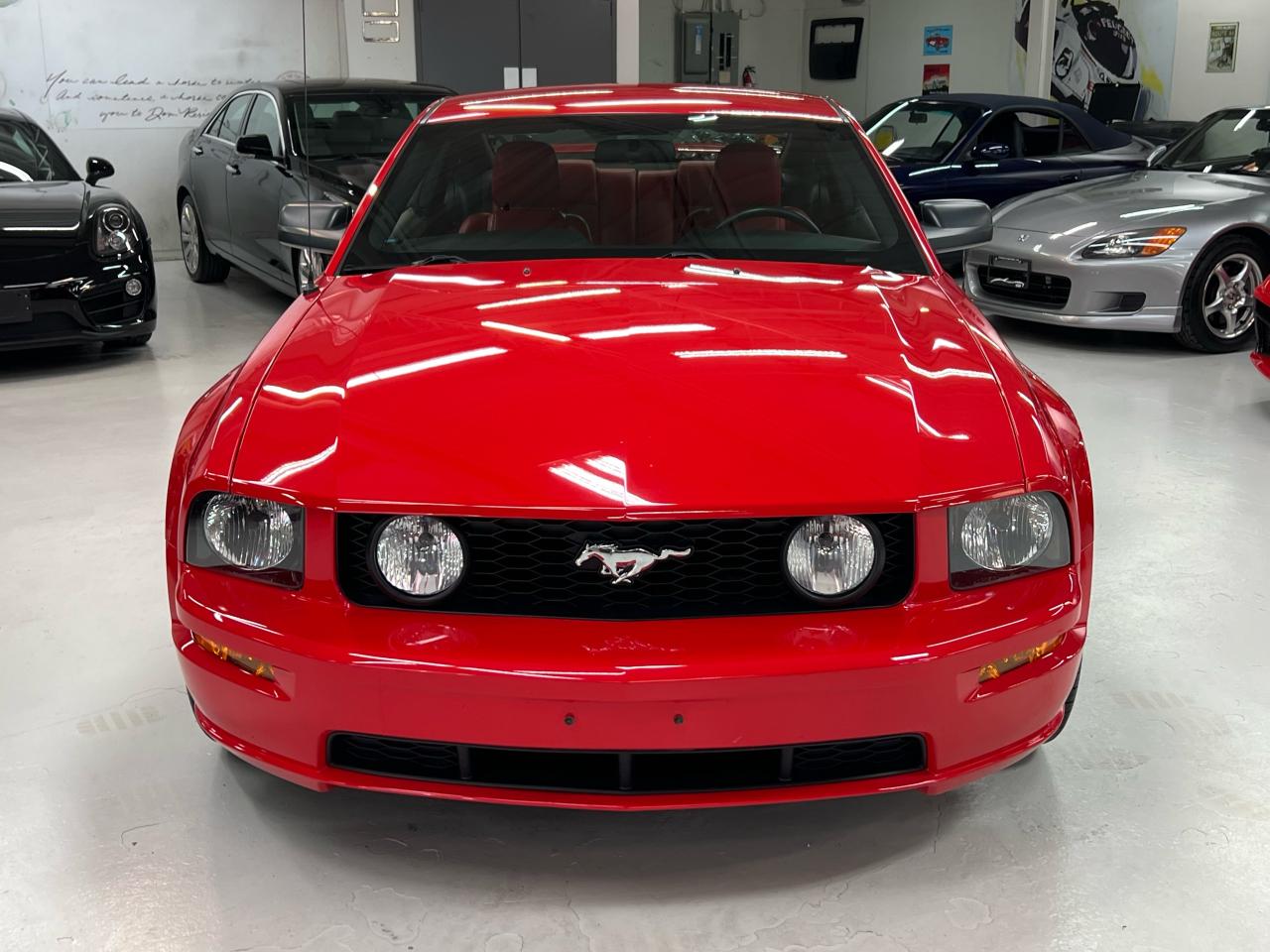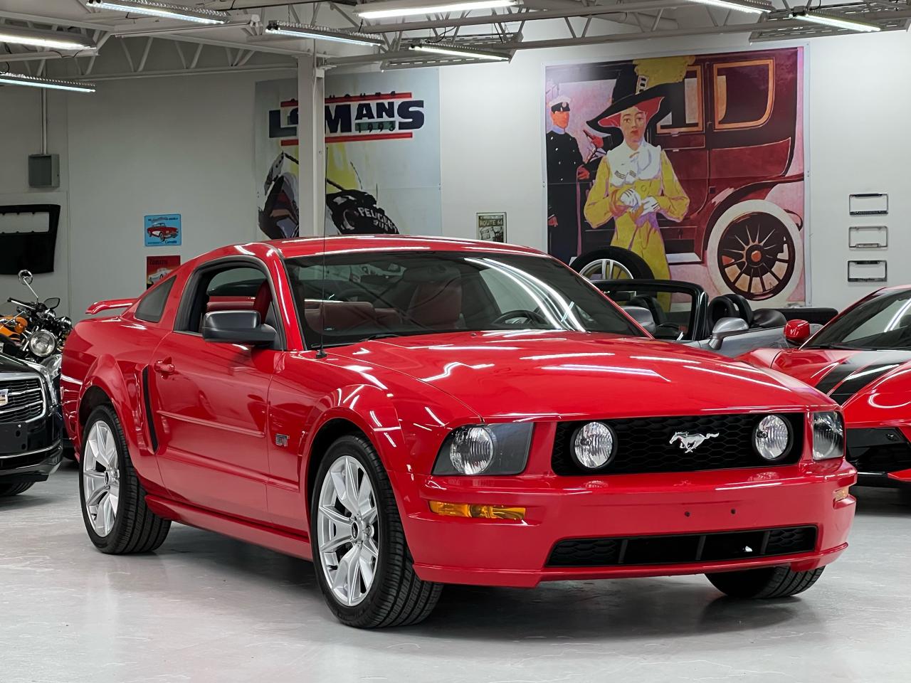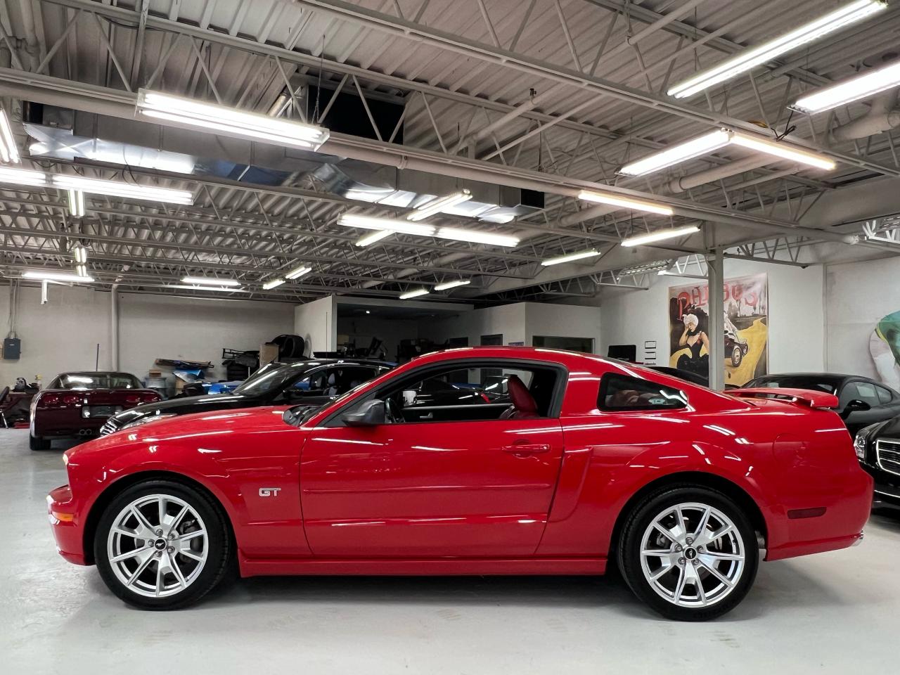 In 2005 Ford recaptured the original Mustang magic and sales exploded! We are proud to offer an exceptional example of this iconic Pony car — presented in Colorado Red over Midnight Black with Crimson Red leather trim with less than 54,000 km. This GT is a crisp, well-kept example in true collector-car condition, optioned with the Shaker 500 audio and the right visual extras.