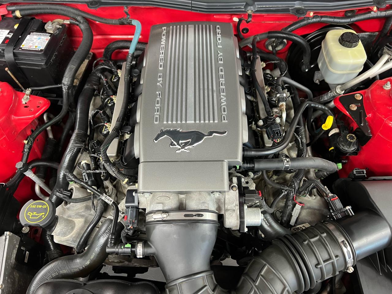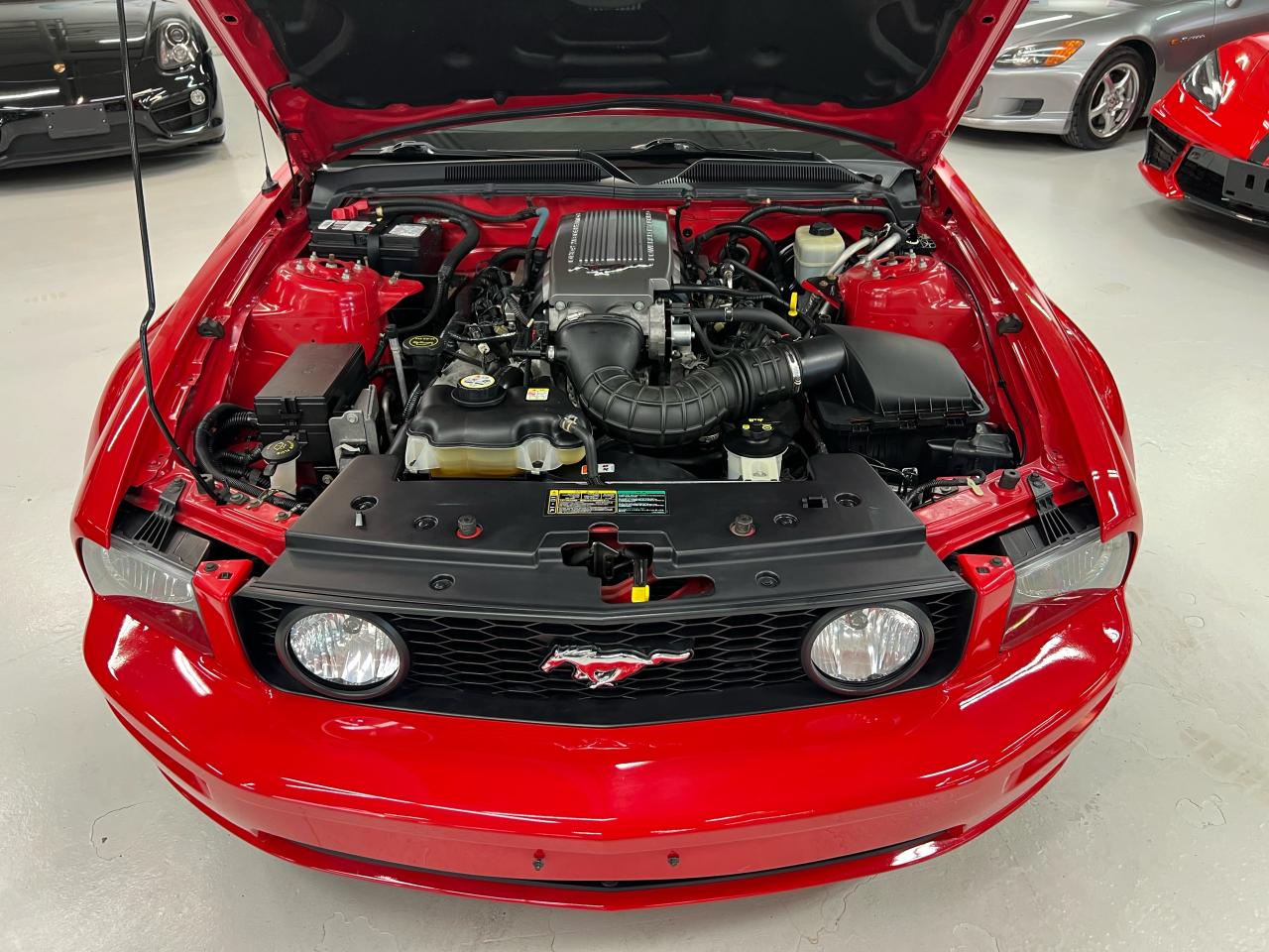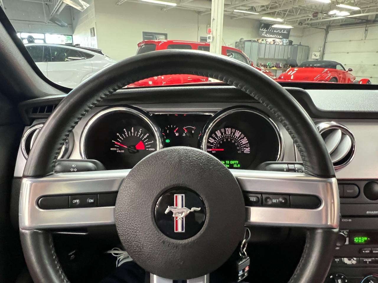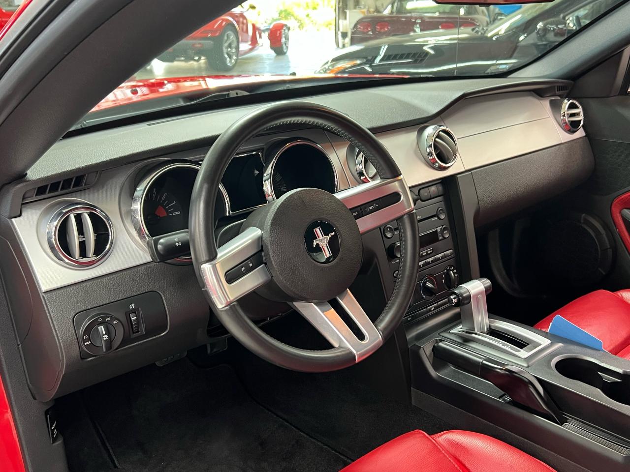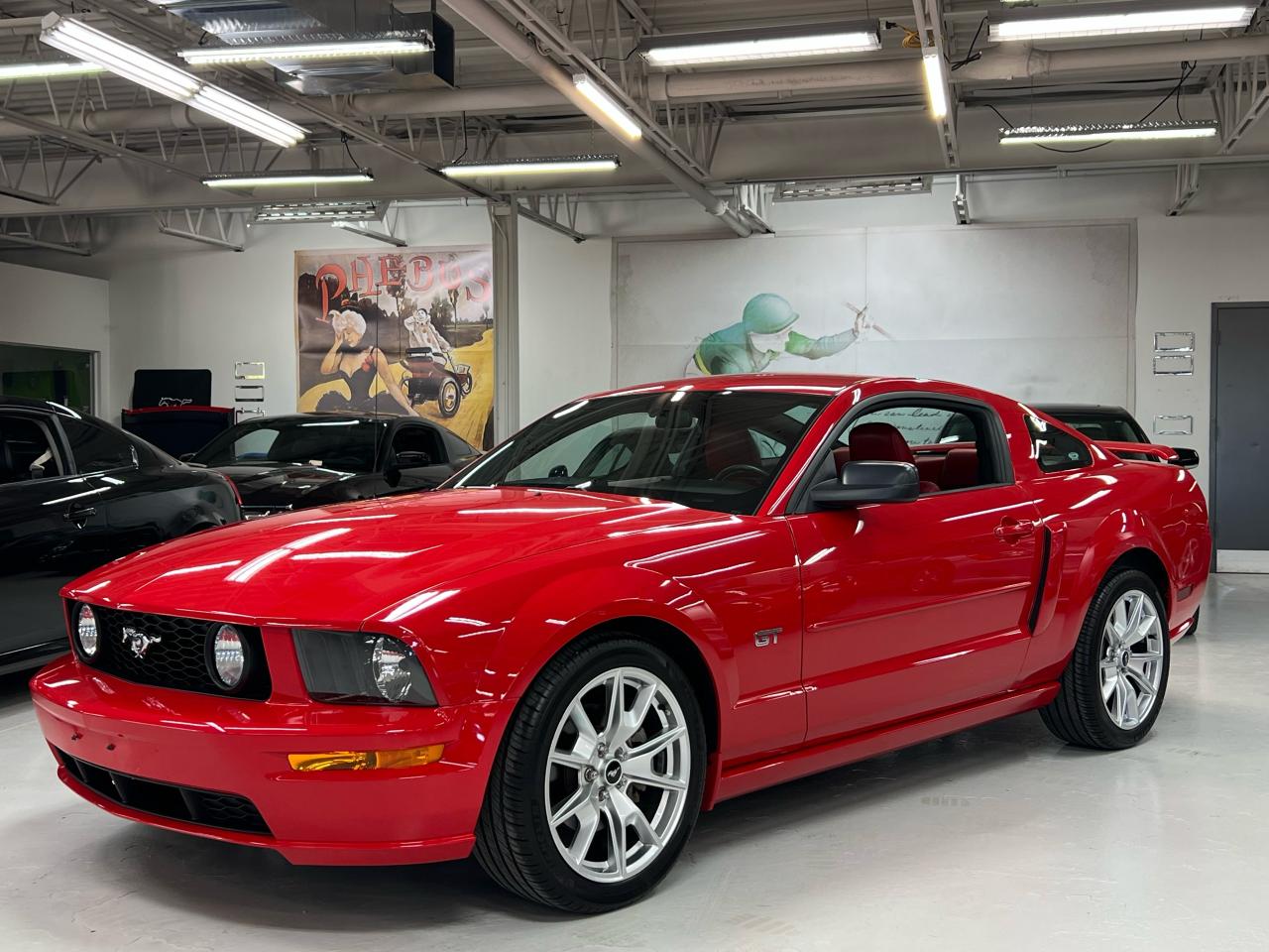 In 2005 Ford recaptured the original Mustang magic and sales exploded! We are proud to offer an exceptional example of this iconic Pony car — presented in Colorado Red over Midnight Black with Crimson Red leather trim with less than 54,000 km. This GT is a crisp, well-kept example in true collector-car condition, optioned with the Shaker 500 audio and the right visual extras.