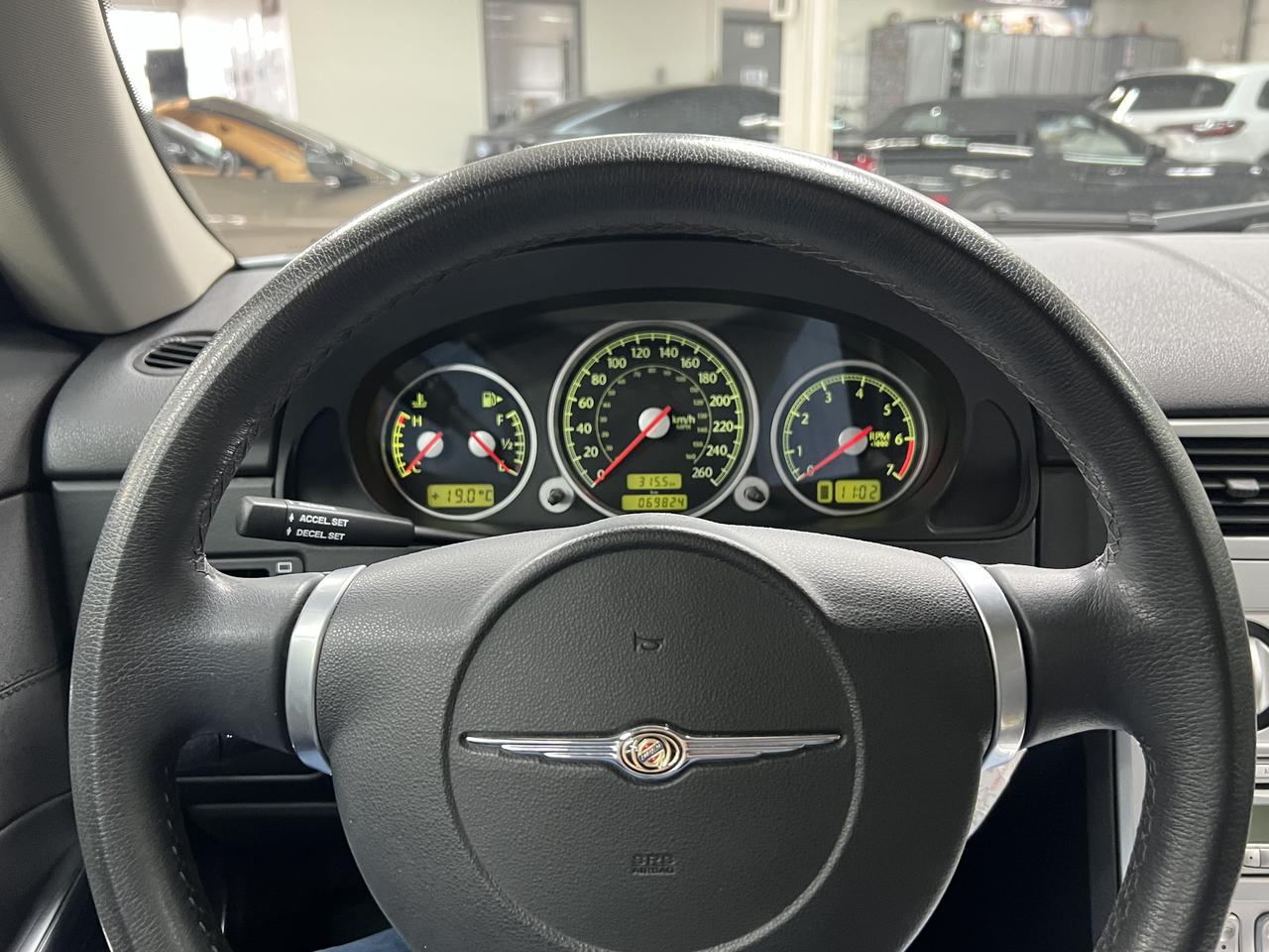 This one-owner (Chrysler employee) 2007 Chrysler Crossfire Limited Coupe has covered just 69,000 km from new and has clearly been cared for the right way. Serviced on schedule exclusively at the Chrysler dealership. Finished in Sapphire Silver Blue Metallic over Dark Slate Grey leather, it presents as a new car. Original tires replaced with 4 newÂ