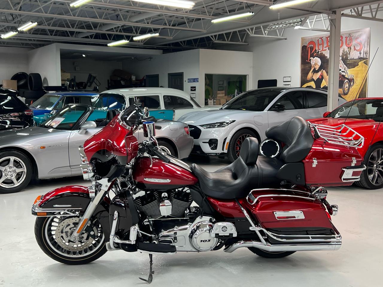 This 2013 Harley Ultra Limited is the one everyone hopes to find — one owner, exceptionally well cared for, and finished in the gorgeous factory two-tone Ember Red Sunglo & Merlot. Always stored indoors and maintained on schedule, this bike is as close to new as you’ll see in a pre-owned touring Harley.