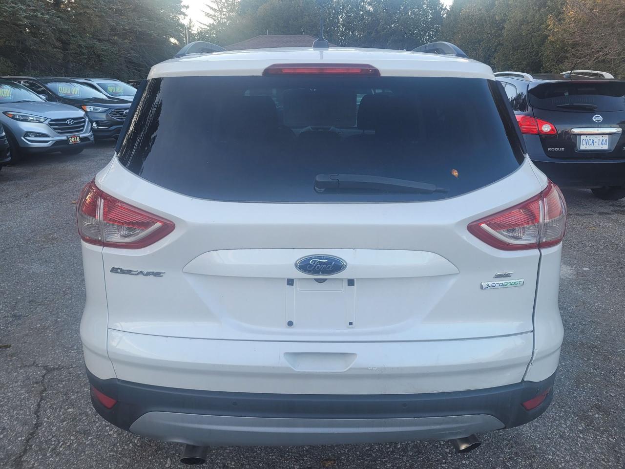 The 2014 Ford Escape FWD 4dr SE is a front-wheel drive, 4-door compact SUV from the SE trim level, typically equipped with a 1.6L turbocharged four-cylinder engine and a 6-speed automatic transmission. Key features include SYNC, satellite radio, a backup camera, heated front seats, fog lights, and alloy wheels.