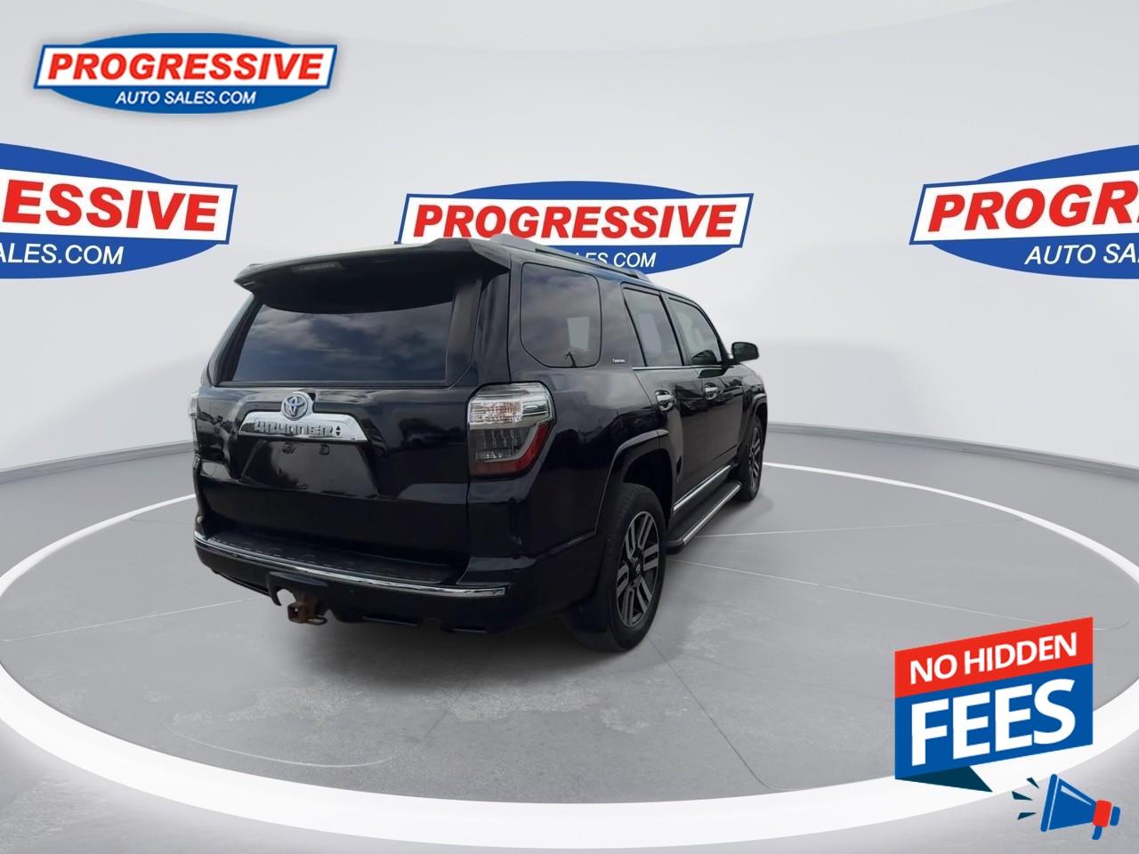 True to its roots as an authentic off-road Sport Utility Vehicle, the revised 2016 Toyota 4Runner combines heavy-duty construction with advanced multi-terrain technology. A powerful exterior design projects 4Runner's strength and outdoor adventure ability. For 2016, changes include a new dynamic look, a reduction in weight and many technological enhancements in its cabin. With its proven performance, the 2016 Toyota 4Runner gives you the capability to escape the city whenever the mood strikes. This SUV has 115,007 kms. It's black in colour . It has a 5 speed automatic transmission and is powered by a 270HP 4.0L V6 Cylinder Engine.