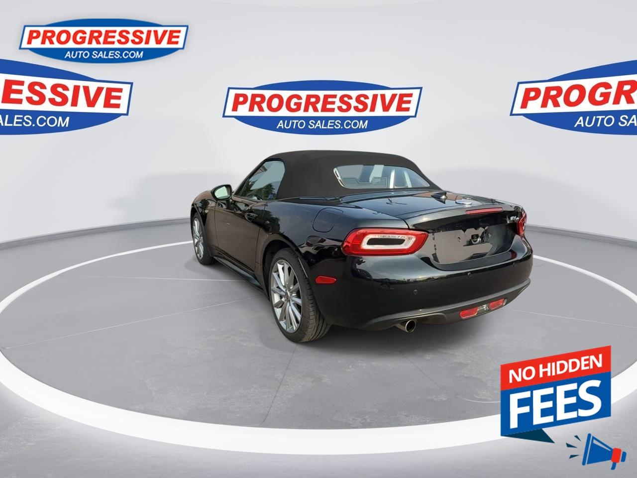 Our 124 Spider's trim level is Lusso. Upgrading to this Lusso Fiat 124 Spider sees the addition of a few more options such as upgraded premium aluminum alloys, 6 speaker stereo with a 7 inch display and Bluetooth connectivity, proximity key for keyless entry and push button start, automatic climate control, leather upholstered bucket seats with double stitching, heated cushion and seatback front seats, a rear view camera while also including all the options found in the lower level trim.