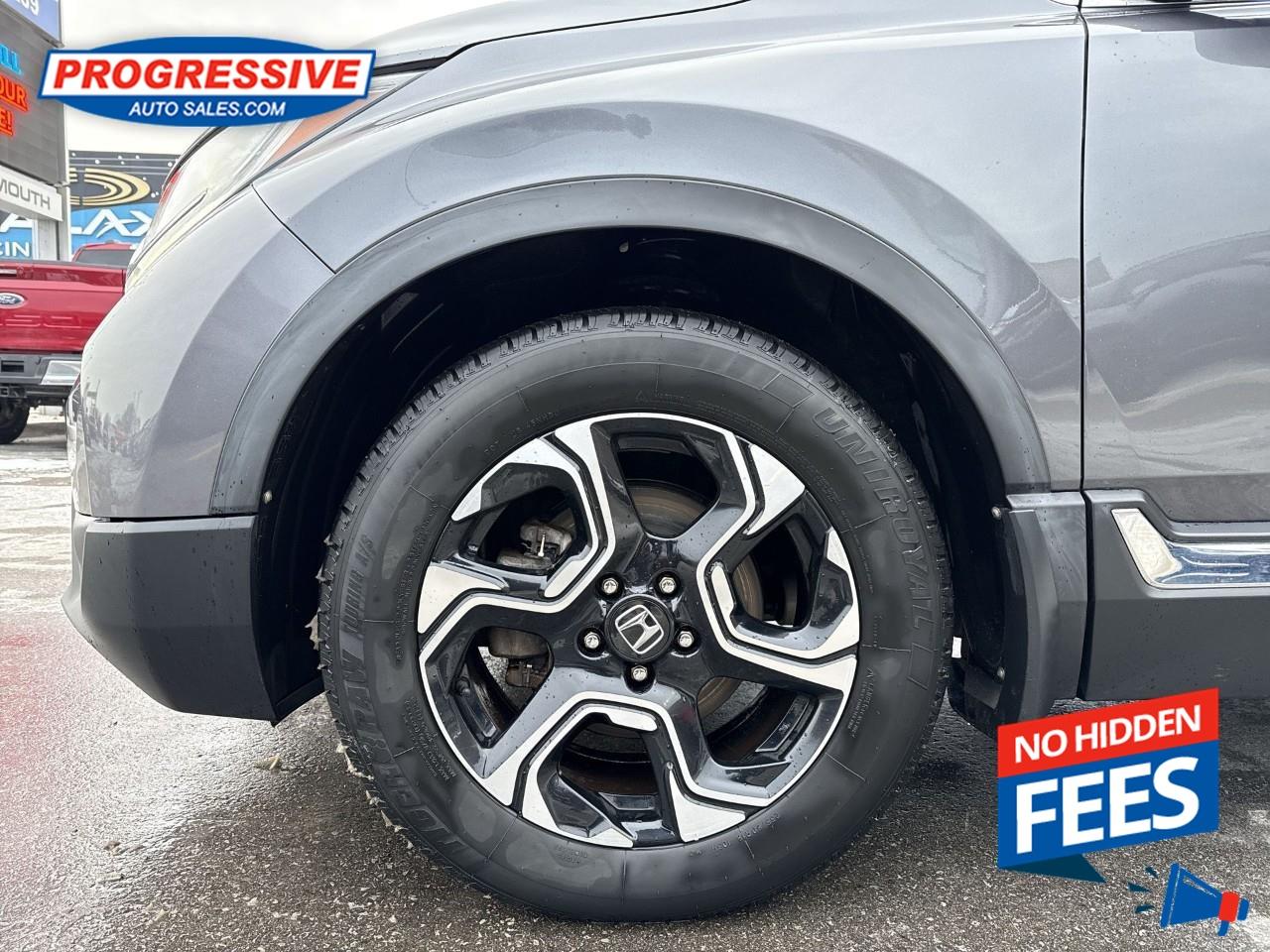 Our CR-V's trim level is Touring. Touring is the top trim of the CR-V and it shows in every detail. It's many features include a 7 inch display audio system with satellite navigation, Bluetooth, SiriusXM, nine speaker premium audio, a hands free power tailgate, a panoramic moonroof, automatic LED headlights, rain sensing windshield wipers, heated leather seats, a memory driver's seat, leather wrapped steering wheel, LaneWatch blind spot detection, adaptive cruise control, forward collision warning, remote start, and much more! This vehicle has been upgraded with the following features: Navigation, Leather Seats, Sunroof, Bluetooth, Heated Steerting Wheel, Premium Sound Package, Power Tailgate.