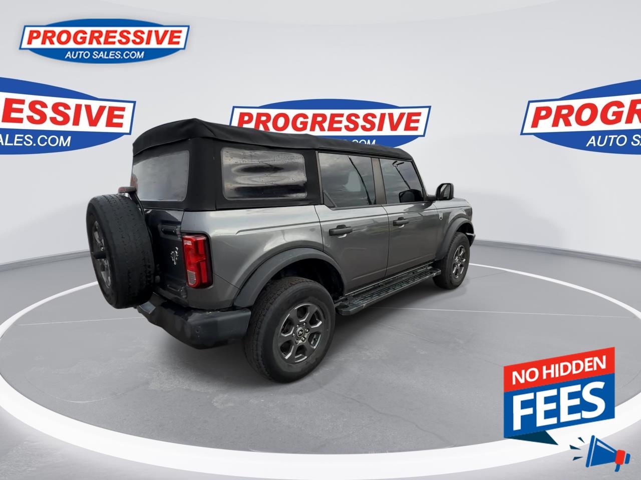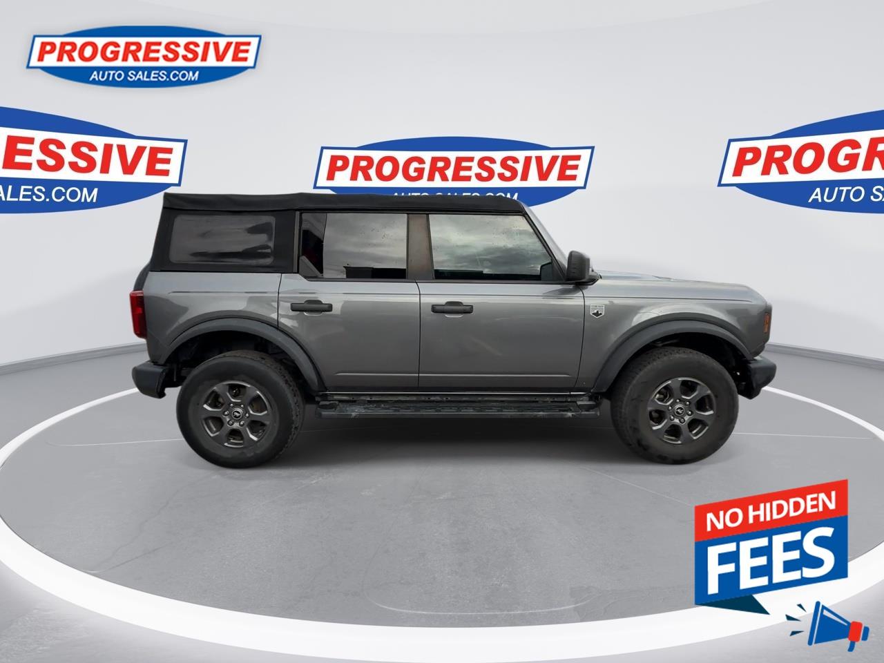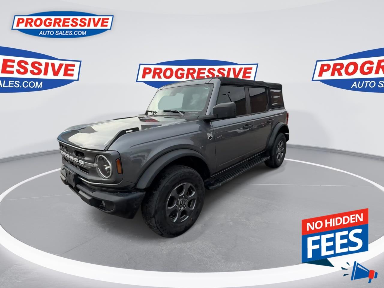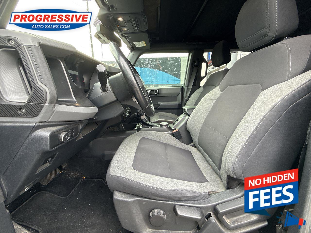 Our Bronco's trim level is Big Bend. Adding some creature comforts, this Bronco Big Bend comes well equipped with a leather steering wheel and gear selector, unique aluminum wheels, front fog lights and a handy 12-volt power inverter! This impressive off-road vehicle also includes a terrain management system with G.O.A.T. modes, tons of extra storage, a highly capable suspension and removable doors. Additional features include SYNC 4 with a large touchscreen display, wireless Android Auto and Apple CarPlay, Ford Co-Pilot360 featuring pre-collision assist, forward collision mitigation and a rear view camera, durable cloth seats and a 50-50 split-folding rear bench seat. This vehicle has been upgraded with the following features: Aluminum Wheels, Terrain Management, Leather Steering Wheel, Apple Carplay, Android Auto, Ford Co-pilot360, Pre-collision Assist.