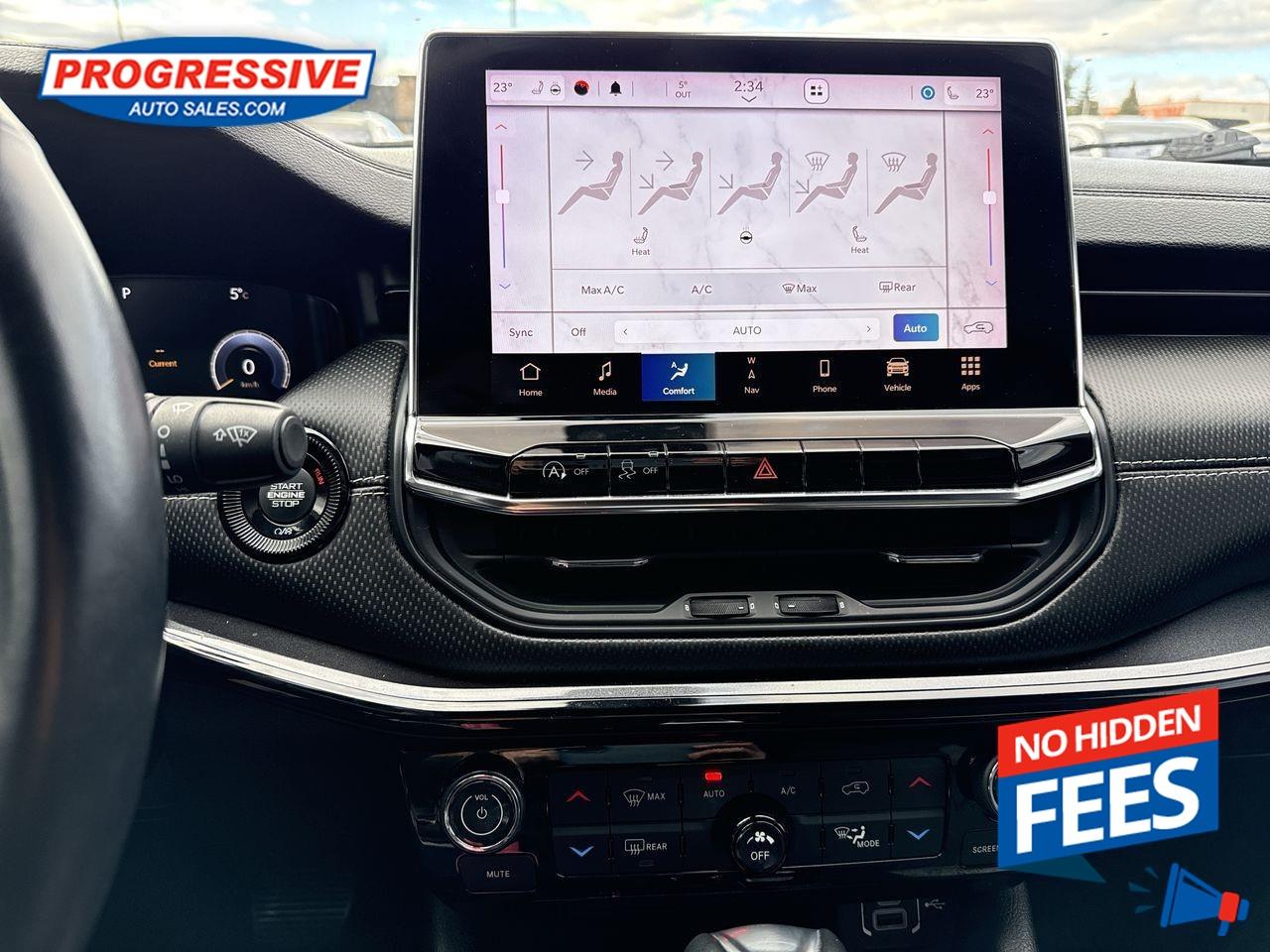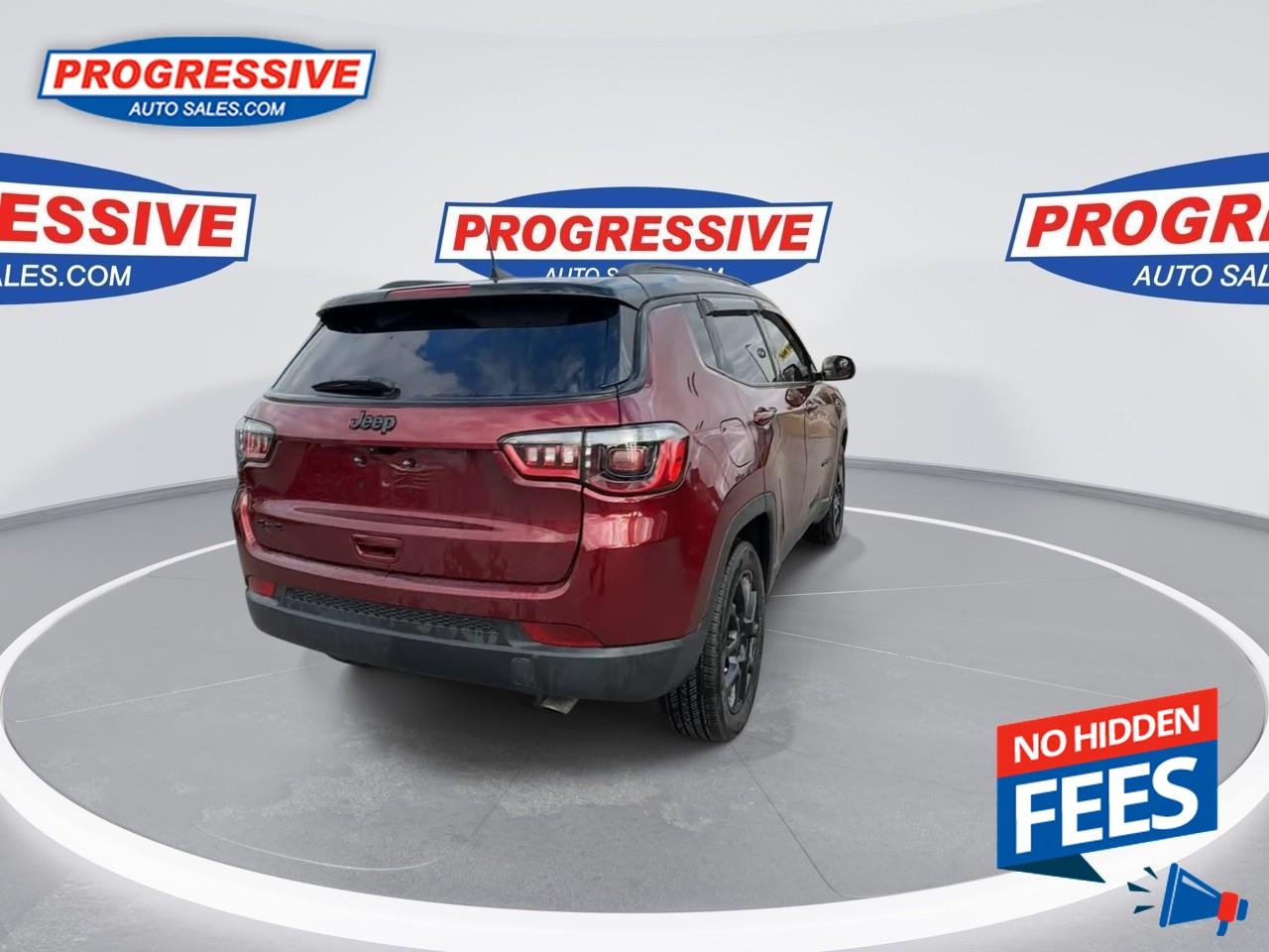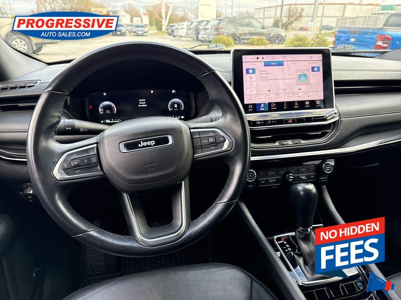 Our Compass's trim level is Altitude. Discover new heights with this Jeep Compass Altitude, which is equipped with a heated leather and metal steering wheel, proximity keyless entry with remote start, and automatic air conditioning. This exciting Compass comes with a 10.1-inch Uconnect 5 infotainment system featuring inbuilt navigation, Apple CarPlay, Android Auto, Bluetooth, and hotspot connectivity. Other great features include heated power-adjustable seats with lumbar support and adjustment, rear camera, and LED headlights with cornering function and daytime running lights. This vehicle has been upgraded with the following features: Heated Seats, Navigation, Heated Steering Wheel, Remote Start, Proximity Key, Apple Carplay, Android Auto.