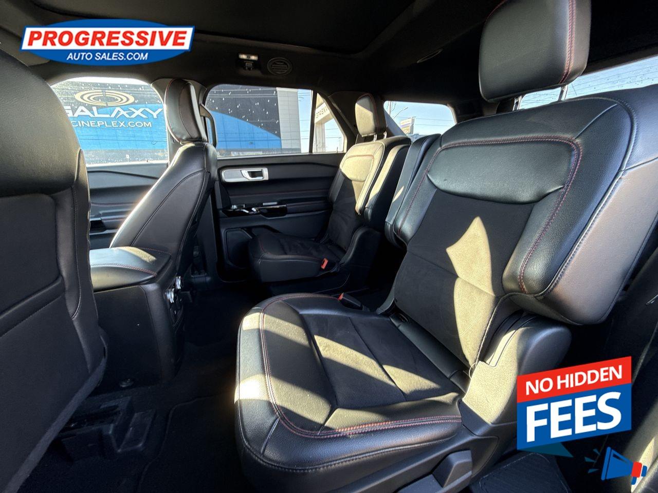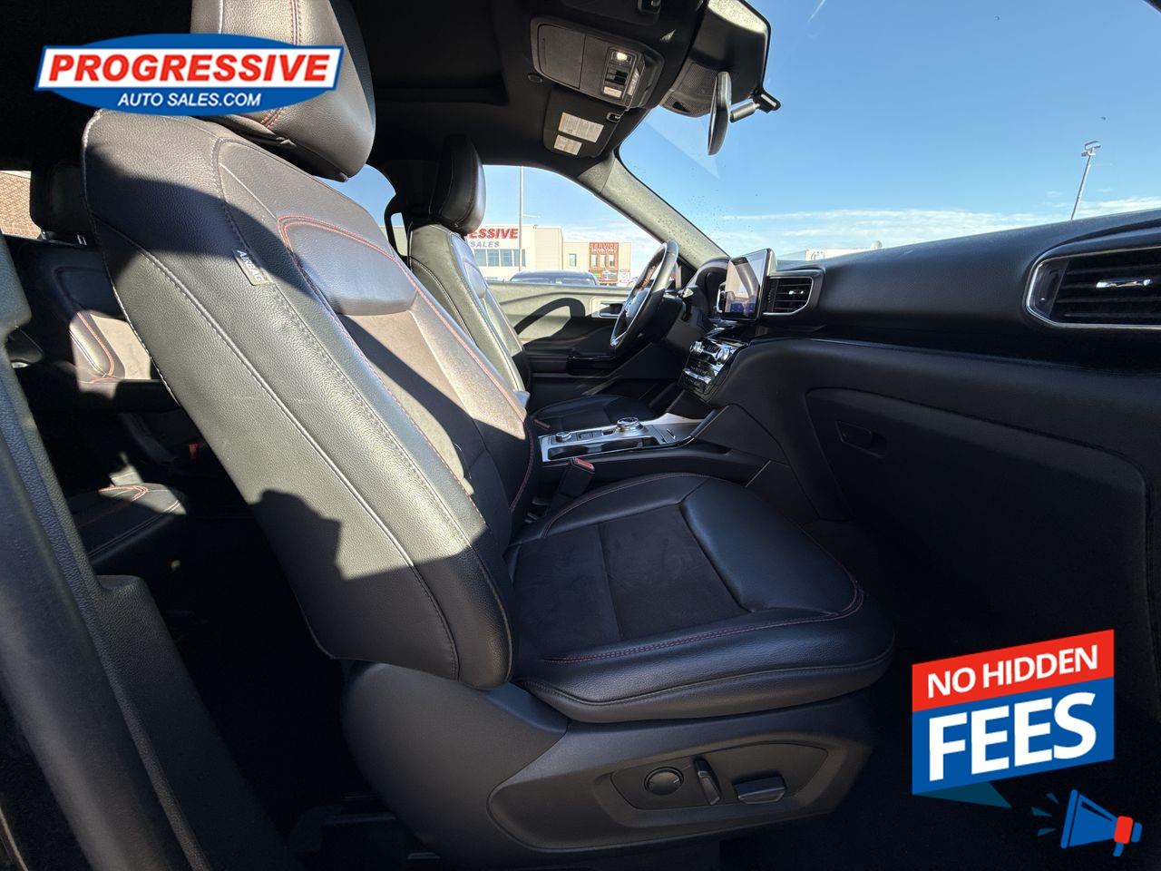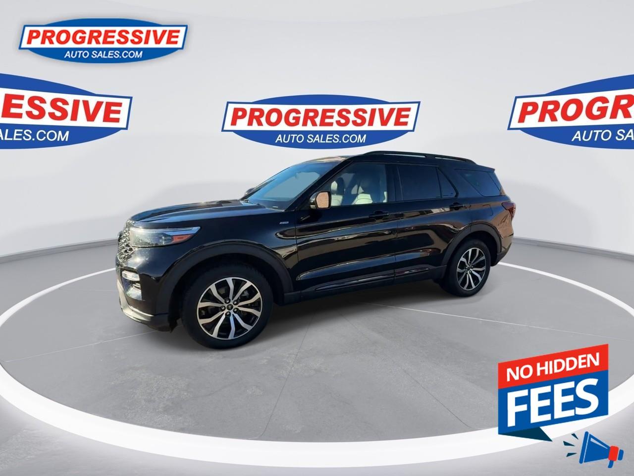 Our Explorer's trim level is ST-Line. Sporty and aggressive, this Explorer ST-Line receives unique exterior styling with a blacked-out grille, body-colored panels and machined aluminum wheels, along with heated front leather seats with power adjustment, memory function and lumbar support, 2nd row heated captains chairs, 3rd row seating, red-stitched upholstery, a power-operated liftgate for cargo access, 3 12-volt power outlets, and a 120-volt AC outlet. Connectivity is handled by an immersive 8-inch infotainment screen powered by SYNC 3, and features a sonorous 12-speaker Bang & Olufsen audio system, inbuilt navigation with voice activation, Apple CarPlay and Android Auto compatibility, 4G LTE mobile hotspot internet access, and SiriusXM satellite radio. Safety is assured thanks to adaptive cruise control, with Ford's Co-Pilot 360 system, featuring an aerial view camera system, evasion assist, blind spot monitoring, lane keep assist, lane departure warning, automatic emergency braking, forward collision alert, and front and rear parking sensors. Additional features include dual-zone climate control, proximity keyless entry with smart device remote start, LED headlights with automatic high beams, and even more. This vehicle has been upgraded with the following features: Adaptive Cruise Control, Leather Seats, Premium Audio, Navigation, 360 Camera, Apple Carplay, Android Auto.