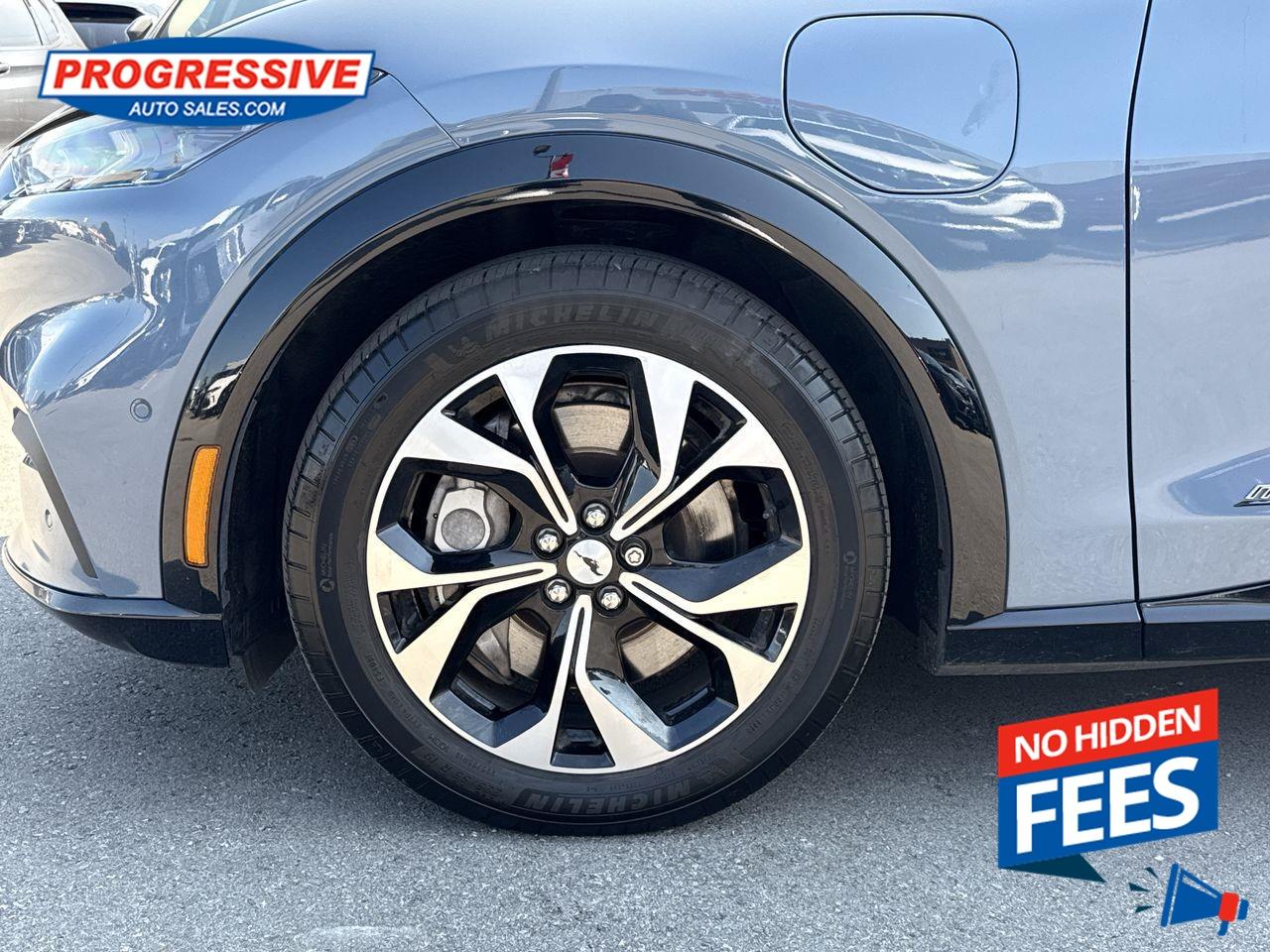 Our Mustang Mach-E's trim level is Premium. Step up to this Mustang Mach-E Premium and be rewarded with a fixed dual-panel glass sunroof, a premium Bang & Olufsen audio system, upgraded aluminum wheels and a power liftgate for rear cargo access, along with a fast charging system, LED lights with automatic high beams, heated ActiveX bucket seats with driver seat power adjustment and lumbar support, a heated steering wheel, dual-zone climate control, FordPass Connect mobile hotspot internet access, and an expansive 15.5-inch infotainment screen powered by SYNC 4, bundled with wireless Apple CarPlay and Android Auto, inbuilt navigation, and SiriusXM satellite radio. Road safety is taken care of by a host of features including adaptive cruise control, Ford Co-Pilot360 with blind spot monitoring and pre-collision alert with automatic emergency braking, lane keeping assist, lane departure warning, front and rear parking sensors, driver monitoring alert, evasive steering assist, an aerial view camera system, and Ford's Mykey system. Additional features include 60/40 folding rear seats, proximity key with push button start, and so much more. This vehicle has been upgraded with the following features: Sunroof, Heated Seats, Premium Audio, Power Liftgate, Heated Steering Wheel, Electric Vehicle, Fast Charging.