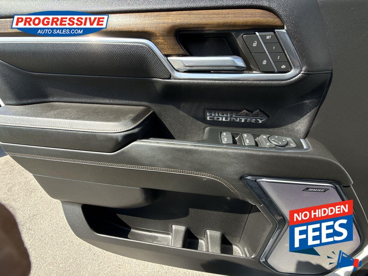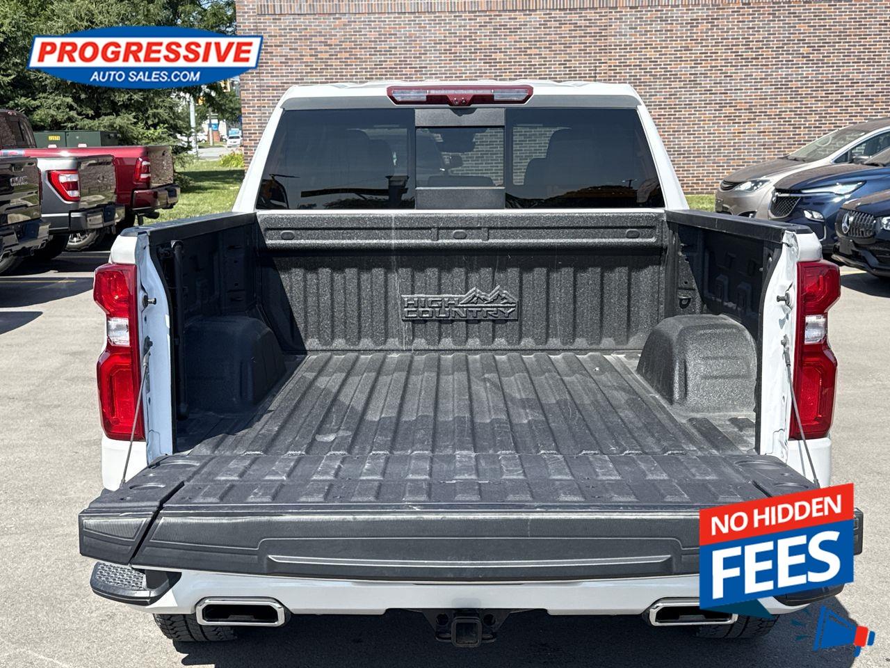 Our Silverado 1500's trim level is High Country. This top of the line Silverado 1500 High Country is the pinnacle trim from Chevrolet and was designed to reward you with the best truck on the market. This fully loaded truck comes with premium leather seats with exclusive stitching and authentic open-pore wood trim, unique aluminum wheels, and Chevrolet's Premium Infotainment 3 system that's paired with a larger touchscreen display, wireless Apple CarPlay and Android Auto, 4G LTE hotspot and SiriusXM. Additional high end features include a BOSE premium audio system, a spray-in bedliner, wireless device charging, remote engine start, blind spot detection with trailer side detection, forward collision warning with automatic braking, intellibeam LED headlights, a leather wrapped steering wheel, lane keep assist, Teen Driver technology, trailer hitch guidance and a HD 360 surround vision camera plus so much more! This vehicle has been upgraded with the following features: Leather Seats, Aluminum Wheels, Wireless Charging, Memory Seats, Premium Audio, Wireless Charging, Power Tailgate.