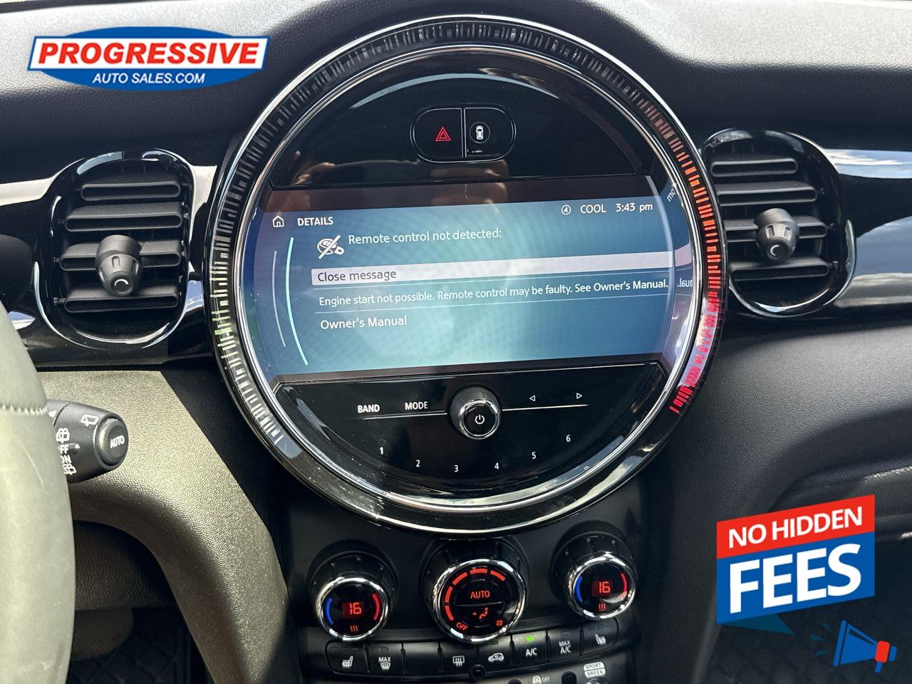 Our 3 Door's trim level is Cooper S. This MINI Cooper S steps things up with enhanced performance, quasi-dual stainless steel exhaust tips, Revolite spoke wheels and automatic climate control. Also standard include front seats with cushion extension and lumbar support, LED headlights with automatic high beams and cornering function, front and rear fog lamps, cruise control with steering wheel controls, a leather-wrapped steering wheel, rear park distance control, and leatherette seating upholstery. Additional features also include forward collision mitigation, front and rear cupholders, push button start, and even more! This vehicle has been upgraded with the following features: Climate Control, Synthetic Leather Seats, Forward Collision Mitigation, Led Lights, Air Conditioning, Cruise Control, Rear Camera.