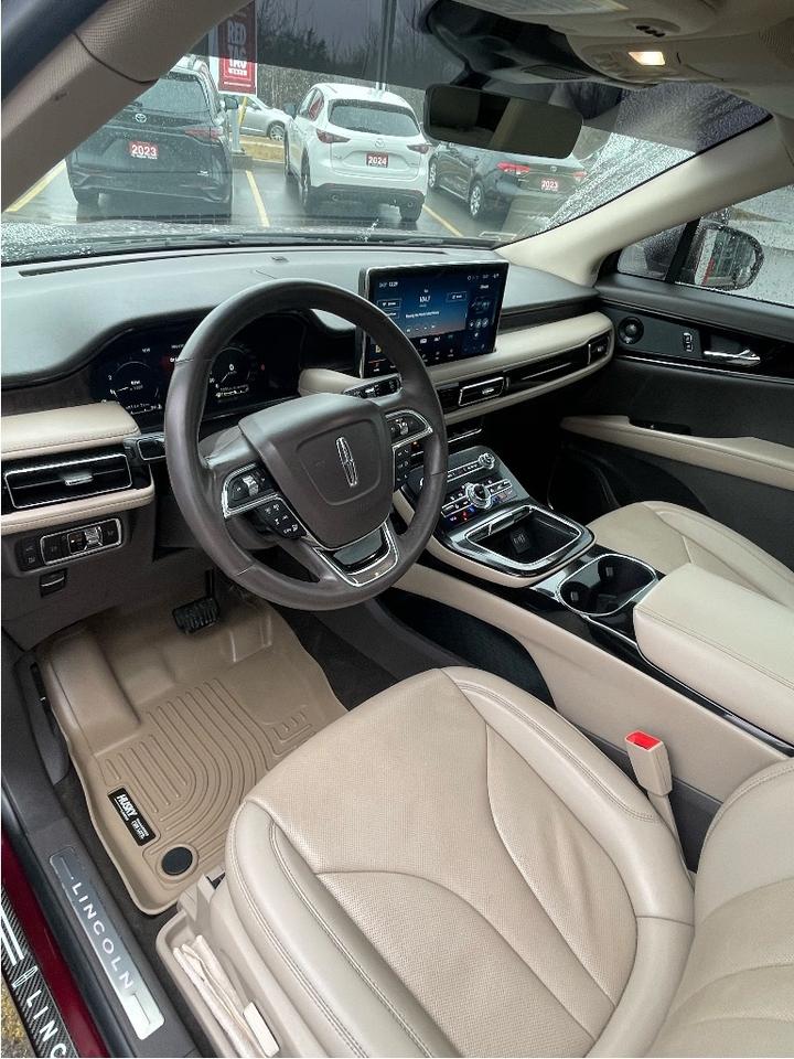 Fully Certified - with Winter Tires on alloys- Husky all weather mats- 5-seater luxury SUV with standard All-Wheel Drive (AWD), a 2.0L turbocharged 4-cylinder engine (250 hp), and an 8-speed automatic transmission. Key features include a 13.2-inch touchscreen, panoramic Vista roof, heated/ventilated front seats, heated steering wheel, and Lincoln Co-Pilot360 1.0 safety tech