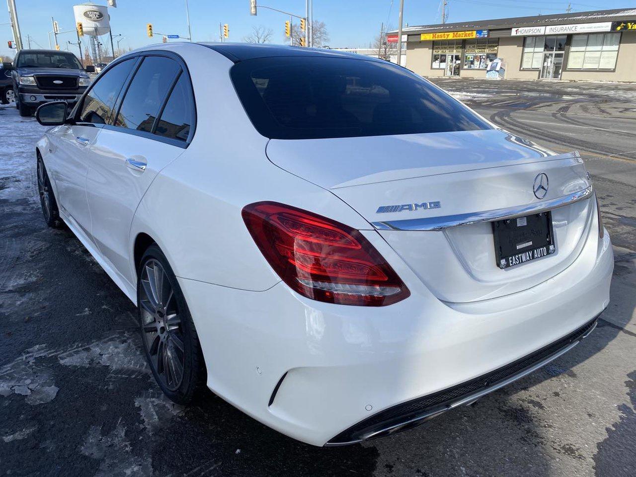 This 2018 Mercedes Benz C43 AMG 4 MATIC comes with white exterior with beautiful black interior with red stitching. 63,500 km. Panoramic sunroof, Panoramic back up camera, heated seats, bluetooth audio and much more. Low Kilometers, Priced to sell, no extra fees!
