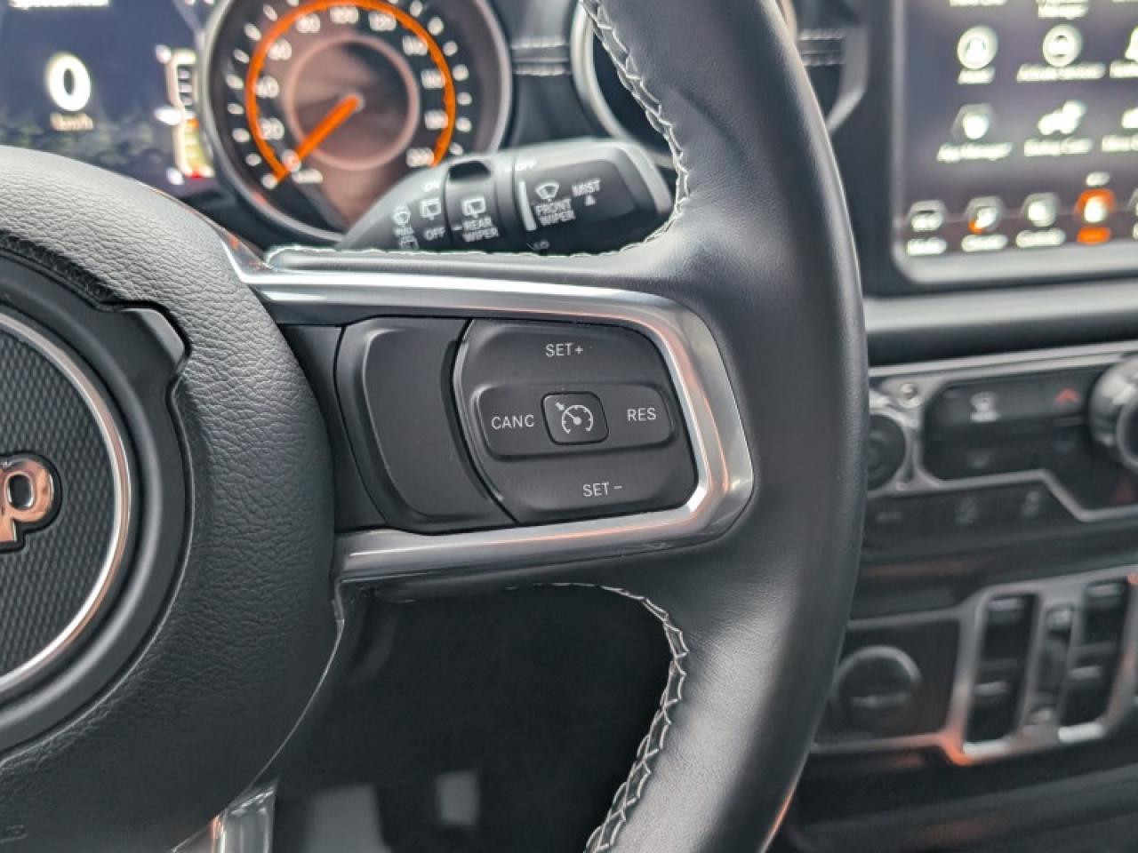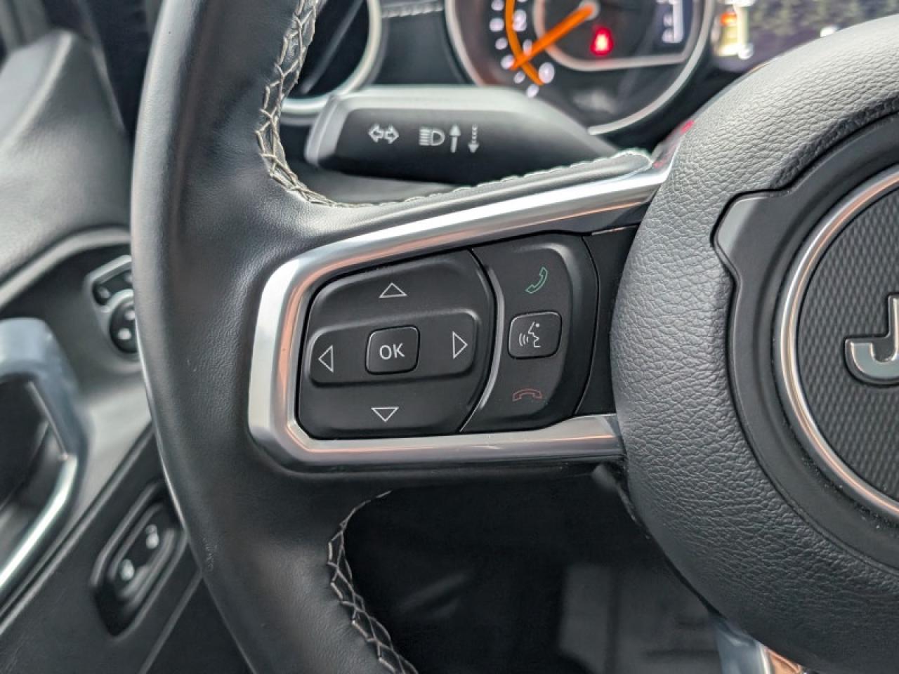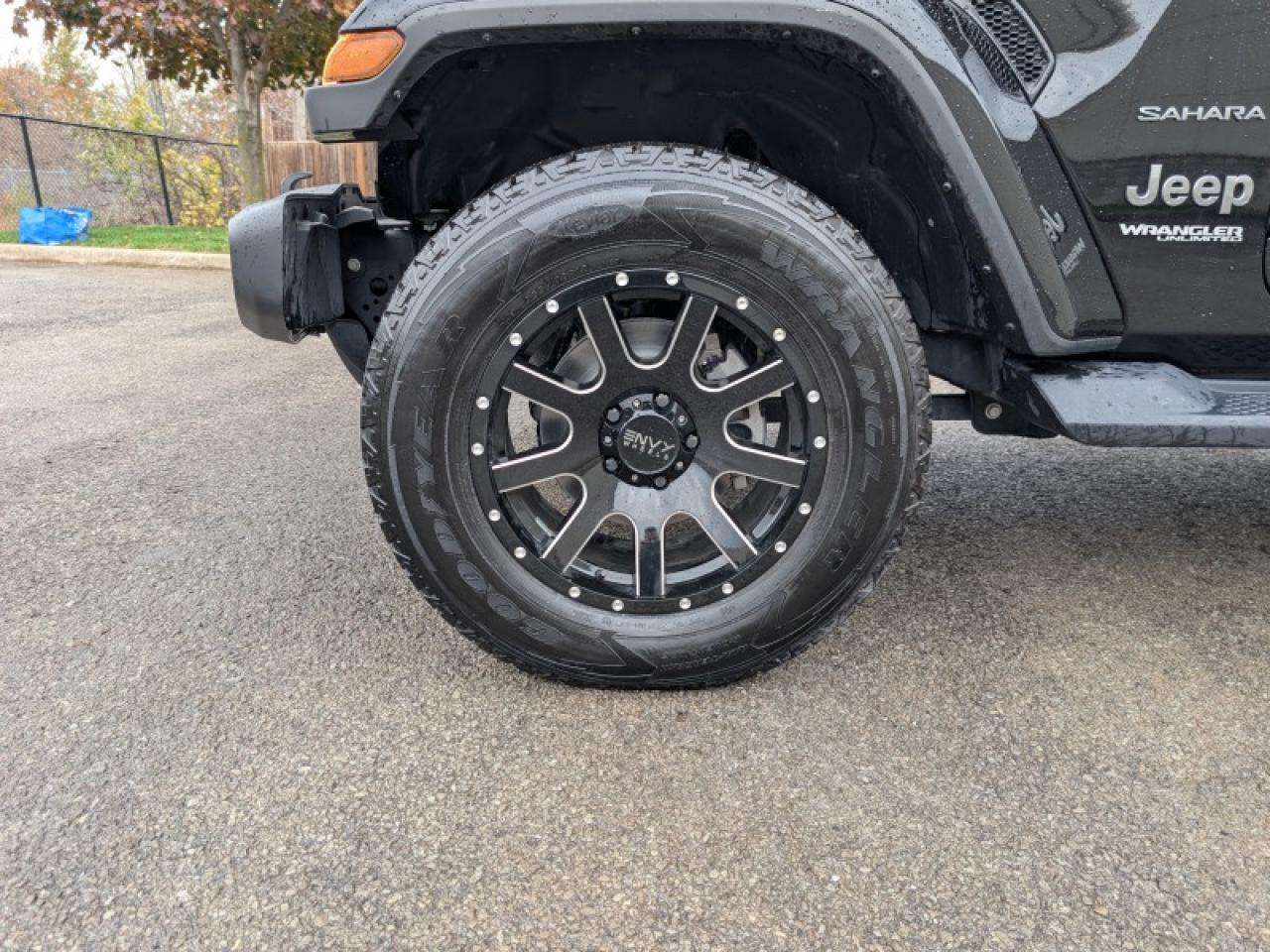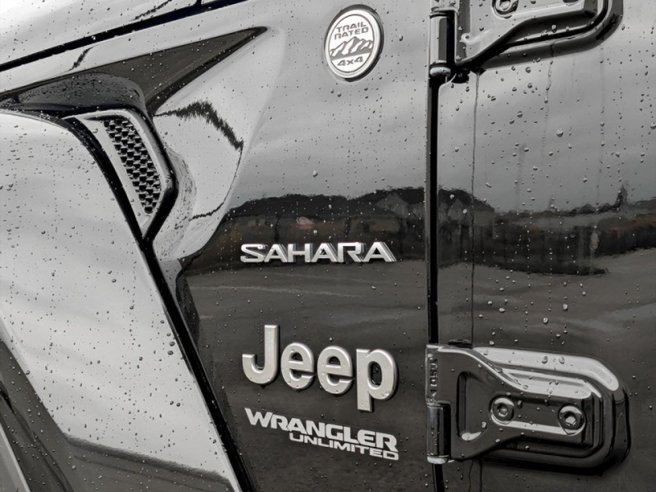 Our Wrangler's trim level is Sahara Unlimited. This Sahara is as rugged as its namesake lands with aluminum wheels, heavy duty shocks, heavy duty suspension, side steps, chrome exterior accents, Sahara logo on seats, Black Freedom Top hardtop, leather steering wheel, power windows and locks, remote keyless entry, voice activated air conditioning, navigation, off road information pages, and wi-fi. It also comes with Uconnect4, voice activation, Android Auto, Apple CarPlay, skid plates, tow hooks, stylish wheels, fog lamps, Dana axles, Command Trac shift on the fly 4x4 system, Trail Rated badge, and a rear view camera.