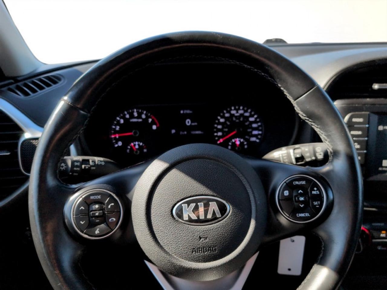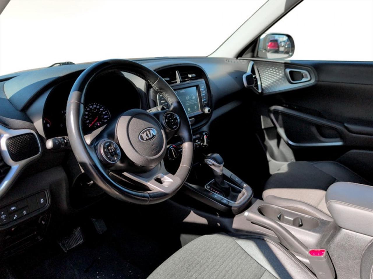 Our Soul's trim level is EX Premium. This EX Premium comes with all of the top level feature like a sunroof, cloth & synthetic leather seats, wireless charging, a heated leather steering wheel, heated front seats, navigation, dual zone climate control and collision avoidance technology. Exterior style is enhanced with a gloss black grille with chrome accents, LED headlights and fog lights, larger aluminum wheels, heated side mirrors with turn signals and a rearview camera. Technology in this awesome SUV is taken to the next level with lane keep assist, blind spot monitoring, forward collision-avoidance assist, rear cross traffic alert and also comes with a proximity key, Android Auto, Apple CarPlay and a 10 inch touchscreen display.