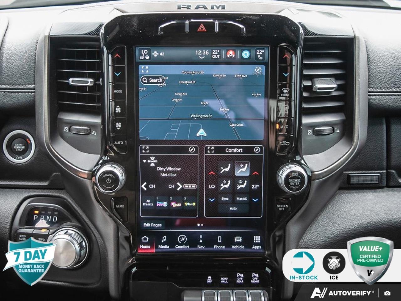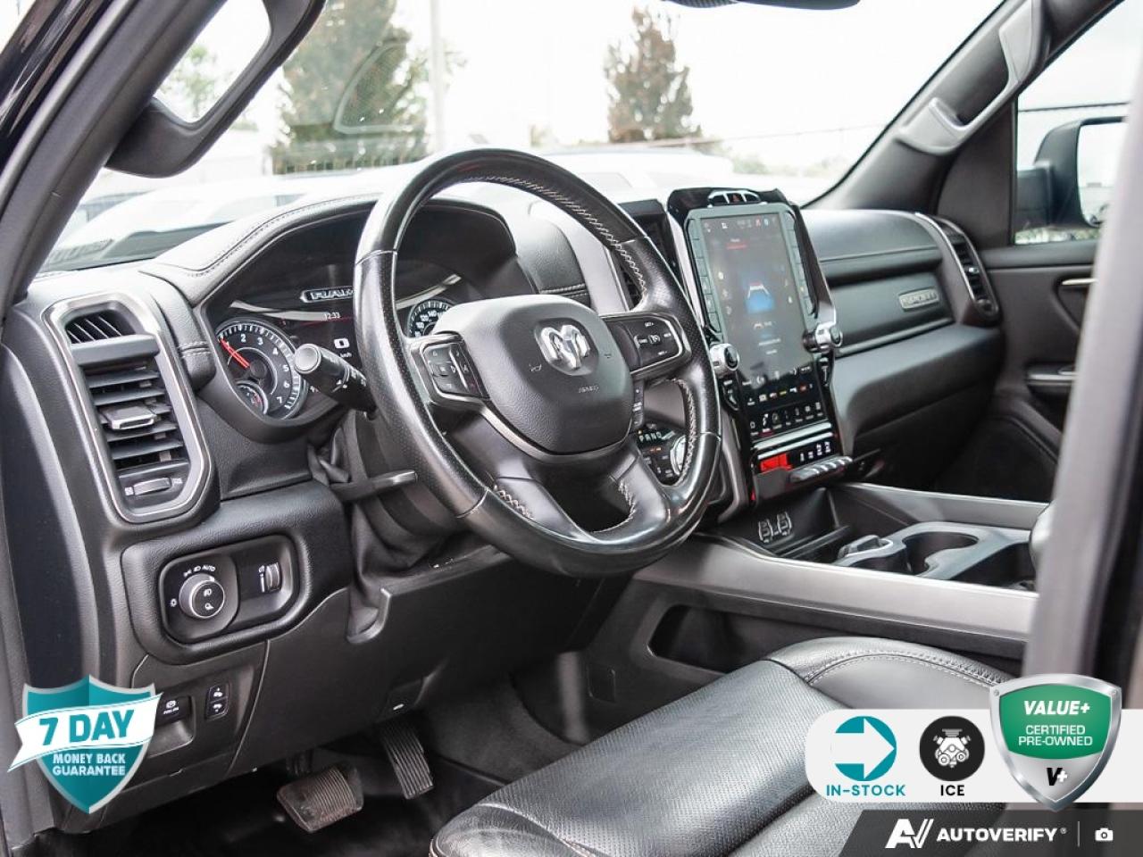 | Remote Start, 1-Year SiriusXM Subscription, 115V Rear Auxiliary Power Outlet, 12''' Touchscreen, 2nd Row In-Floor Storage Bins, 4 MOPAR Adjustable Cargo Tie-Down Hooks, 4-Wheel Disc Brakes, 4G LTE Wi-Fi Hot Spot, 9 Alpine Speakers w/Subwoofer, A/C w/Dual-Zone Automatic Temperature Control, ABS brakes, All R1 High Radios, All Radio-Equipped Vehicles, Apple CarPlay Capable, Bed Utility Group, Class IV Receiver Hitch, Connected Travel & Traffic Services, Connectivity - US/Canada, Disassociated Touchscreen Display, Dome Dual LED Reading Lamps, Dual front impact airbags, Dual front side impact airbags, Dual-Pane Panoramic Sunroof, For Details Visit DriveUconnect.ca, Front Bucket Seats, Front Heated Seats, Front Ventilated Seats, Gloss Black Grille w/Black Surround, Google Android Auto, GPS Antenna Input, GPS Navigation, Hands-Free Phone Communication, HD Radio, Heated door mirrors, Integrated Centre Stack Radio, Media Hub w/2 USB Charging Ports, Night Edition, Park-Sense Front/Rear Park Assist w/Stop, ParkView Rear Back-Up Camera, Pick-Up Box Lighting, Power door mirrors, Power driver seat, Power steering, Power windows, Quick Order Package 25L Sport, Radio: Uconnect 5W Nav w/12.0''' Display, Rain-Sensing Windshield Wipers, Rear Underseat Compartment Storage, Rear window defroster, Rebel Level 2 Equipment Group, Remote Proximity Keyless Entry, Remote Start System, Security Alarm, SiriusXM w/360L On-Demand Content, Speed control, Steering wheel mounted audio controls, Traction control, USB Mobile Projection, Wheels: 22''' x 9''' Forged Aluminum.