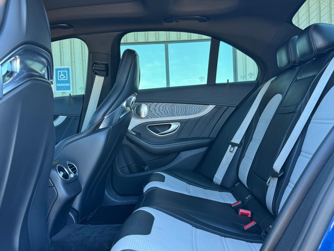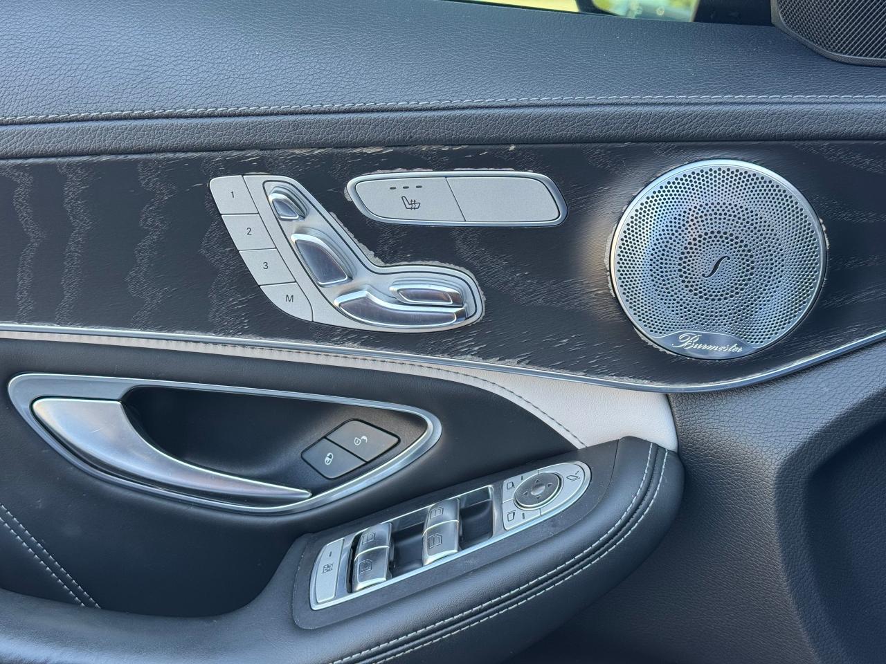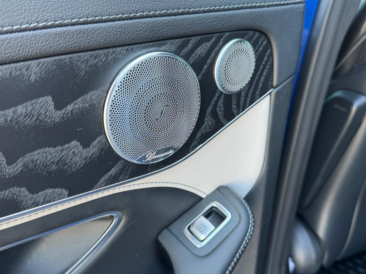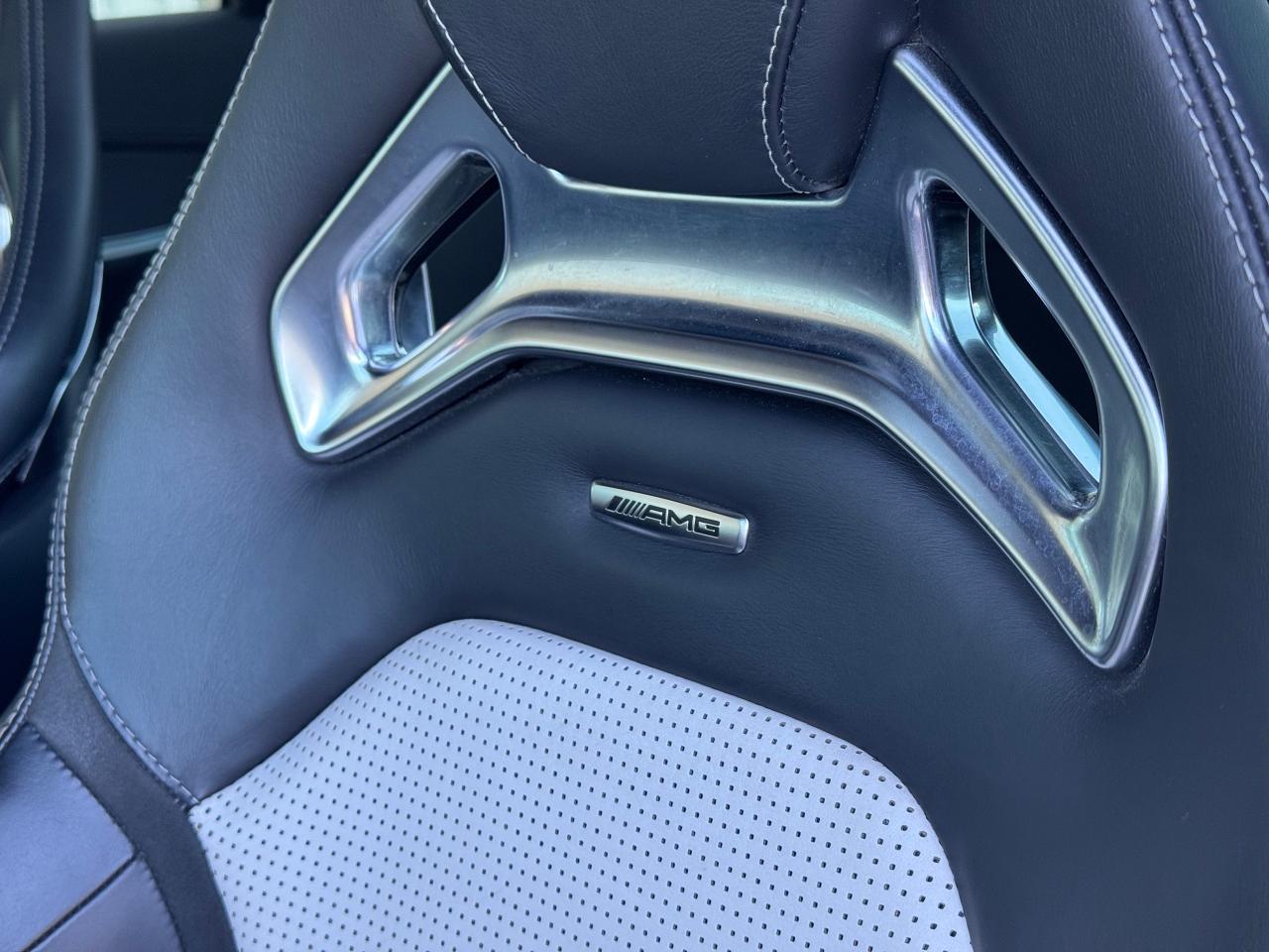 Interior: Features AMG performance seating, Nappa leather, and a Burmester surround sound system.