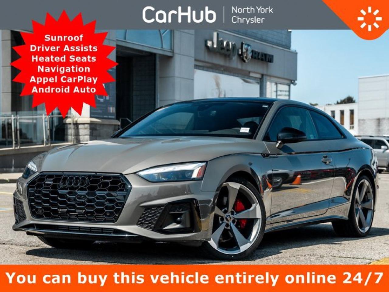 Only 7,603 Kilometers! Experience the uncompromising driving experience of this Audi A5 Coupe. It delivers a Intercooled Turbo Gas/Electric I-4 2.0 L/121 engine powering this Automatic transmission. Window Grid Diversity Antenna, Wheels: 8.5J x 19" Multispoke Design -inc: Graphite grey, Valet Function. This vehicle is in excellent condition and has passed a multi point inspection. Vehicle detailed. Clean CARFAX! Our advertised prices are for consumers (i.e. end users) only.