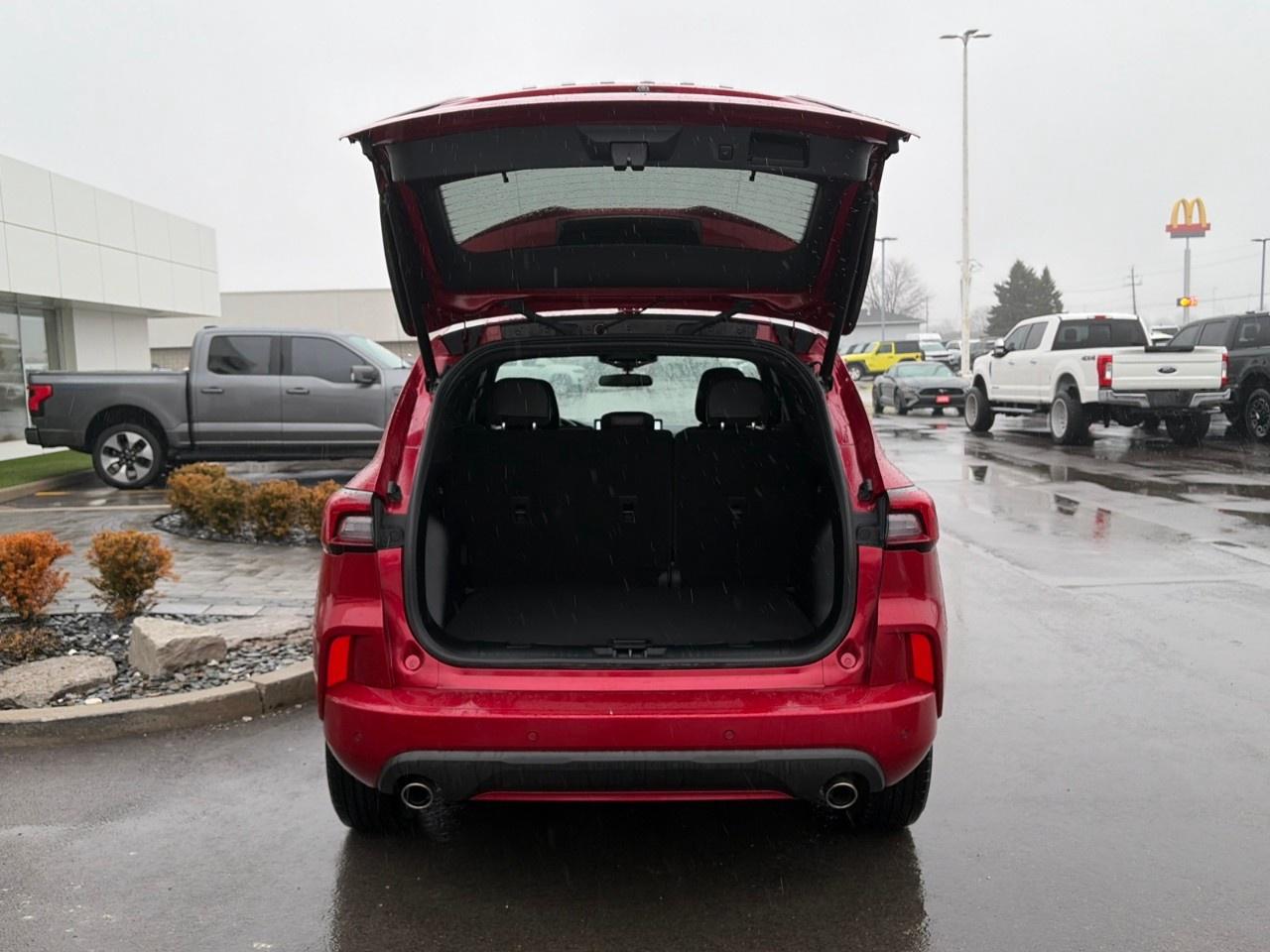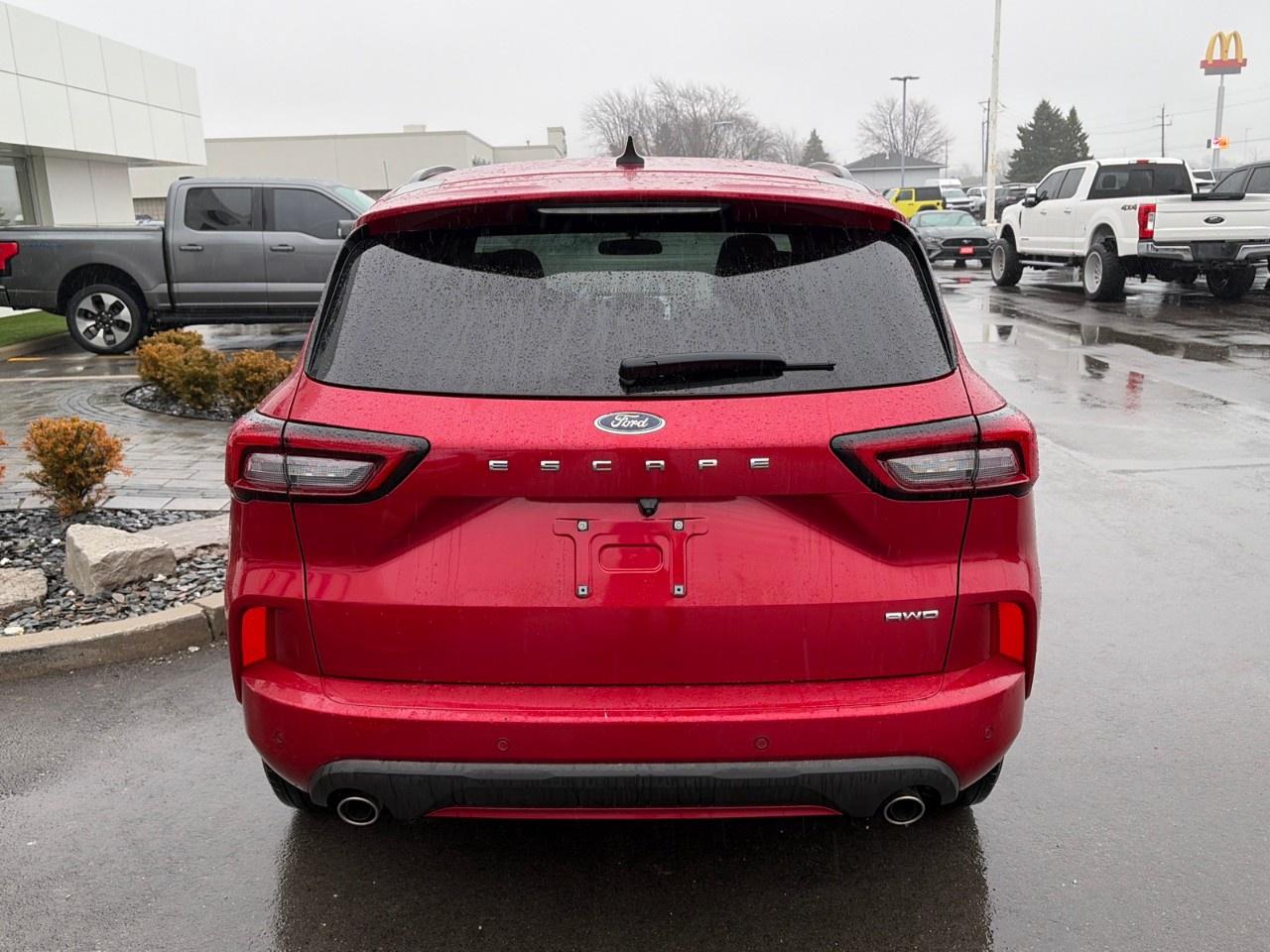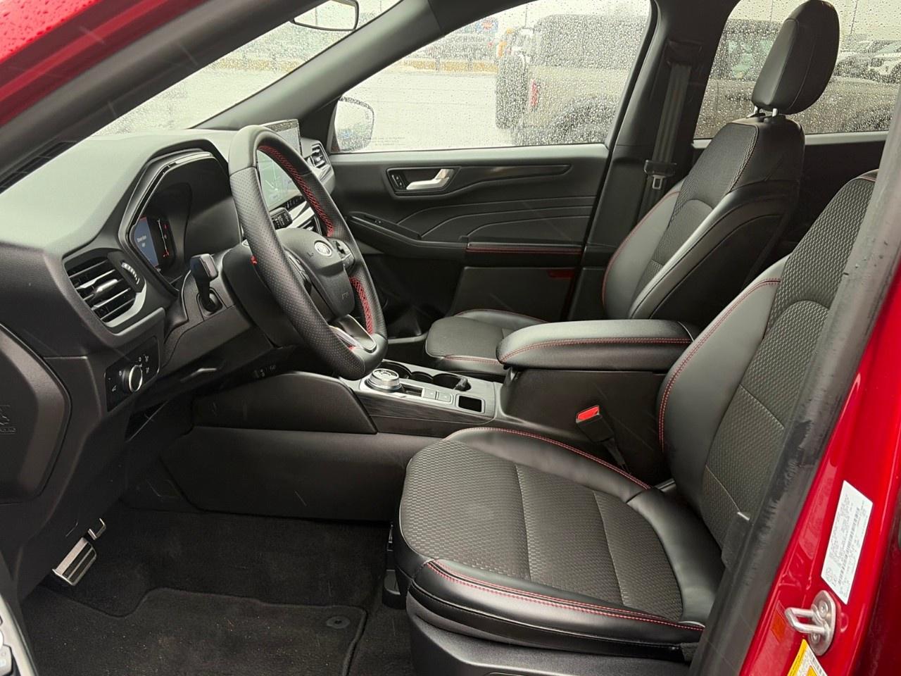 The 2024 Ford Escape STLine AWD with the 1.5-litre EcoBoost engine is a compact SUV that blends sporty styling with efficient performance. It is powered by a turbocharged 1.5 L EcoBoost engine producing about 180 horsepower and 199 lb-ft of torque, paired with an 8-speed automatic transmission and Intelligent All-Wheel Drive for improved traction and stability in various driving conditions. The vehicle seats up to five passengers and offers practical cargo space, modern technology, and good fuel efficiencyaround 9.2 L/100 km city and 7.4 L/100 km highway for AWD modelsmaking it a versatile option for everyday commuting and family use.