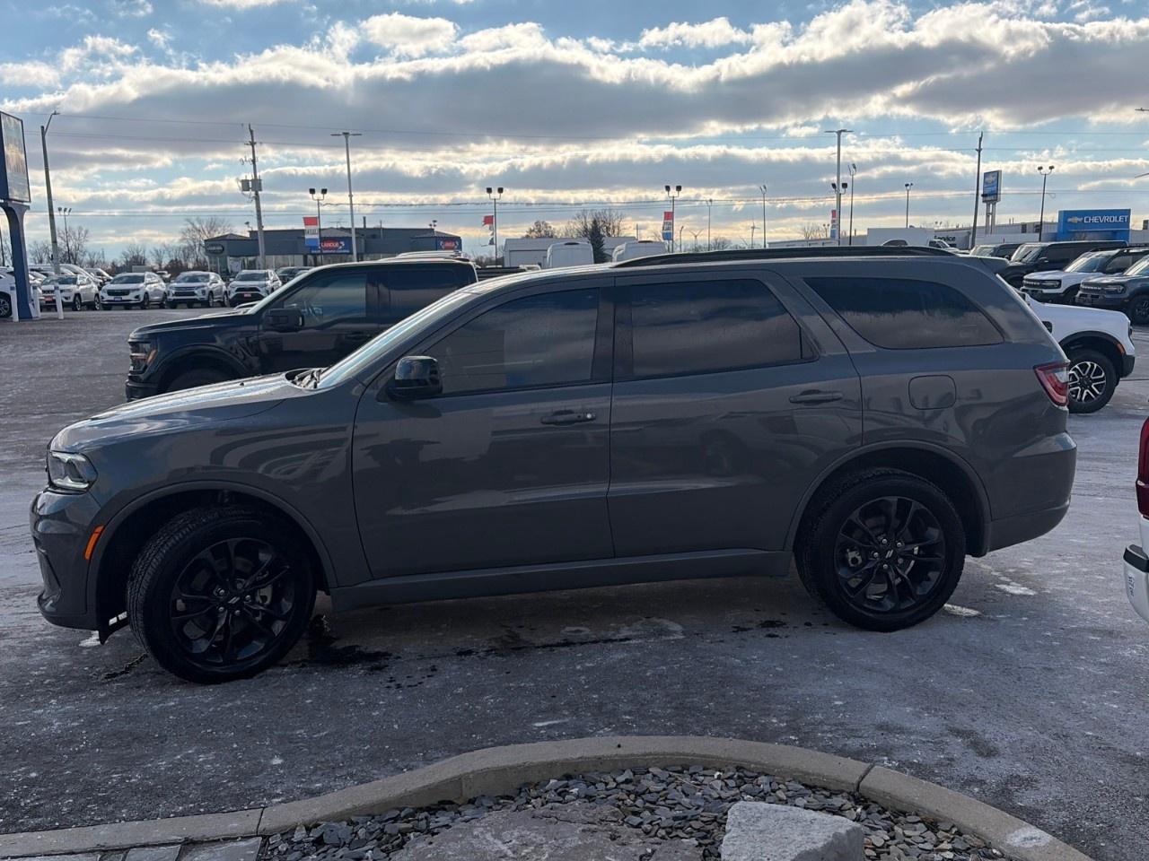 The 2025 Dodge Durango GT SUV 3.6L Auto AWD is a versatile three-row midsize SUV powered by a 3.6-liter Pentastar V6 engine paired with an 8-speed automatic transmission and standard all-wheel drive, delivering around 295 hp and 260 lb-ft of torque with a maximum towing capacity of up to 6,200 lbs. It comfortably seats up to seven passengers and blends family-friendly practicality with everyday performance, fuel efficiency, and modern tech such as Uconnect infotainment, smartphone integration, and available safety features like blind-spot monitoring and rear parking assist.