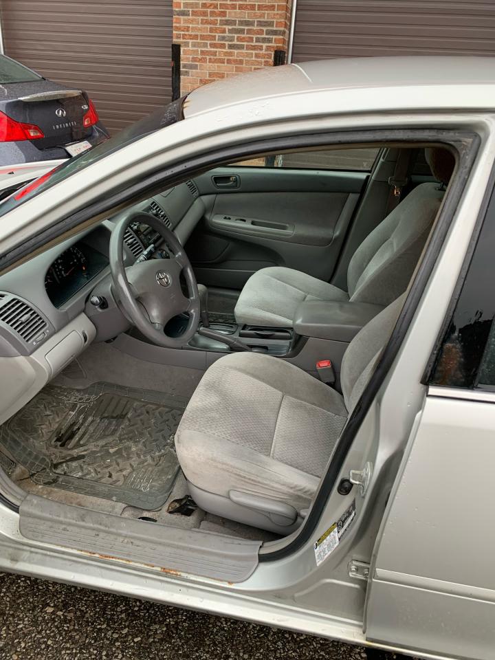 SORRY!! TOO LATE - ALREADY SOLD!! 2004 TOYOTA CAMRY LE - FRONT WHEEL DRIVE - 4 CYLINDER ENGINE - AUTO. TRANS. FULLY EQUIPPED - LOADED WITH OPTIONS INCLUDING, AIR CONDITIONING, CRUISE CONTROL, PREMIUM SOUND SYSTEM, PM, PS, PB, PDL,, AND MORE! CARFAX REPORT-PLEASE CLICK ON ATTACHED LINK TO VIEW FREE REPORT https://vhr.carfax.ca/?id=CiJlR4fdohoZtYGgO0zsH4HQRn3TT+Dh THE FOLLOWING FEATURES LISTED BELOW ARE ALL INCLUDED IN THE SELLING PRICE: CARFAX VEHCLE HISTORY REPORT INCLUDED ORIGINAL OWNERS MANUALS, BOOKS & 2 KEYS YOU CERTIFY AND YOU SAVE $$$ (BEING SOLD AS-IS / NOT CERTIFIED- AS TRADED IN) PLEASE FEEL FREE TO BRING ALONG YOUR TECHNICIAN TO INSPECT, AND TEST DRIVE, THIS VEHICLE PRIOR TO PURCHASING! AT THIS PRICE (BEING SOLD "AS-IS" - NOT CERTIFIED) AS TRADED IN), “This vehicle is being sold “as is,” unfit, not e-tested and is not represented as being in road worthy condition, mechanically sound or maintained at any guaranteed level of quality. The vehicle may not be fit for use as a means of transportation and may require substantial repairs at the purchaser’s expense. It may not be possible to register the vehicle to be driven in its current condition.” HST, LICENCE AND OMVIC ($10.00) FEE EXTRA. NO OTHER (HIDDEN) FEES EVER! PLEASE CALL 416-274-AUTO (2886) TO SCHEDULE AN APPOINTMENT AND TO ENSURE AVAILABILITY FOR THE VEHICLE OF YOUR CHOICE.