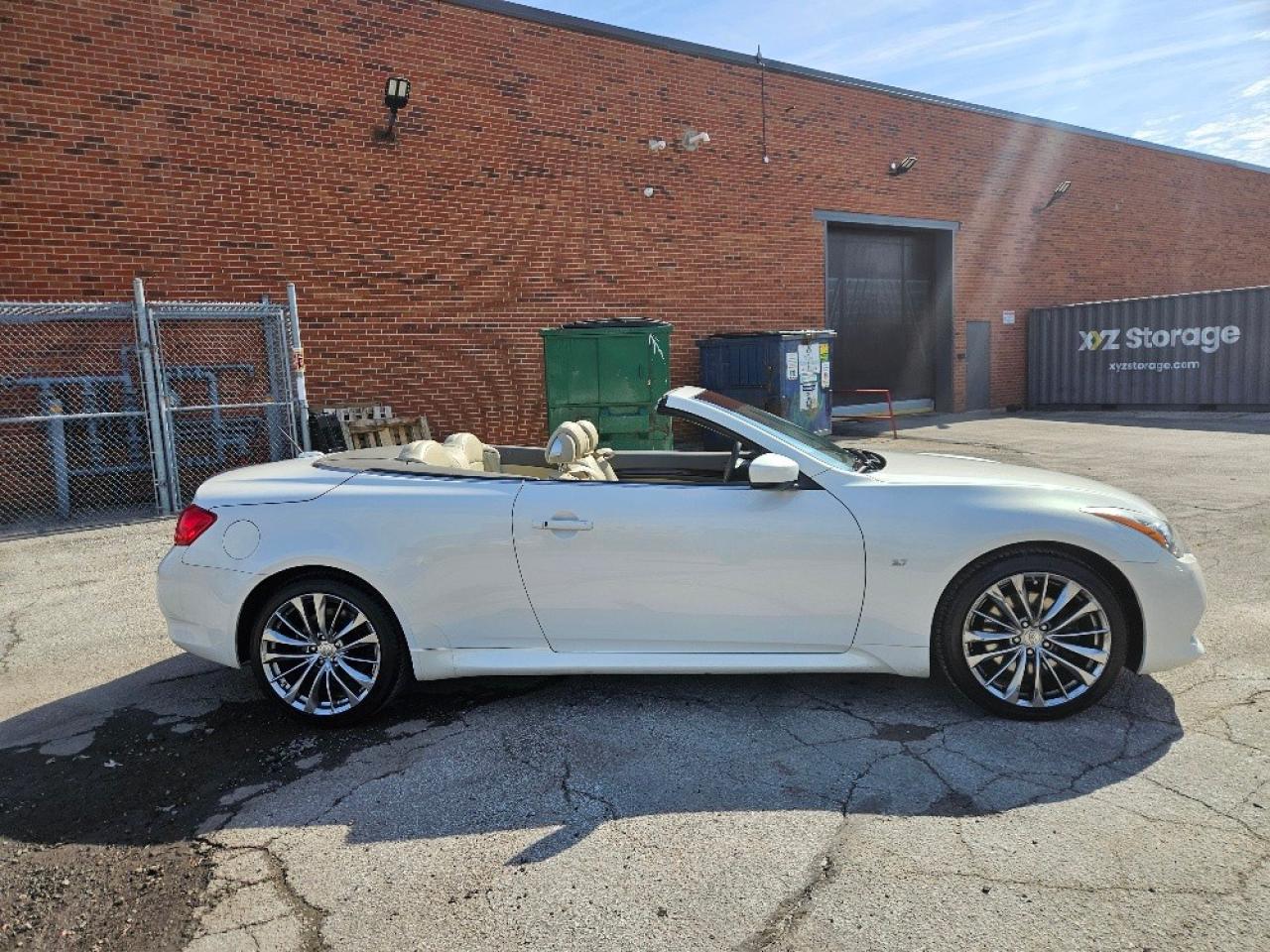 For sale is a stunning 2014 Infiniti Q60 Convertible in Pearl White with a luxurious Beige leather interior. Powered by a 3.7L V6 engine, this stylish convertible offers both performance and elegance, featuring a smooth 7-speed automatic transmission and manual shift mode for an engaging drive. Enjoy the freedom of top-down driving with just the push of a button, while premium tech like navigation, Bluetooth connectivity, push-button start, a back-up camera, and cruise control enhance your driving experience. The cabin is equipped with heated leather seats, ice-cold air conditioning, and full power options for ultimate comfort and convenience. The car also boasts sleek alloy wheels, ensuring you turn heads wherever you go. Well-maintained and garage-kept, this Q60 is in excellent condition and ready to provide both luxury and excitement on every journey. Contact us to schedule your test drive today!