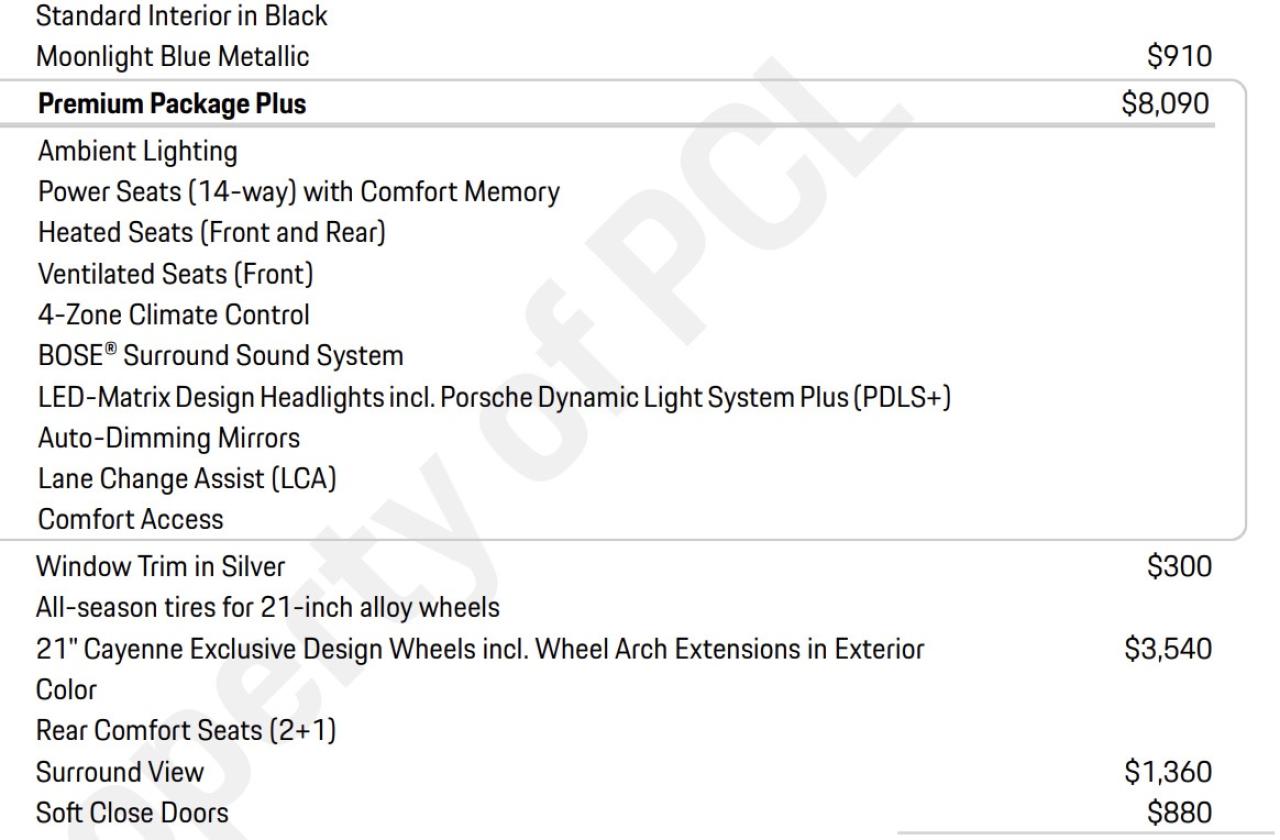 Premium Plus Package ~$7,700(includes ambient lighting, Comfort Access, 14-way seats w/ memory, panoramic roof, ventilated front seats, etc.)