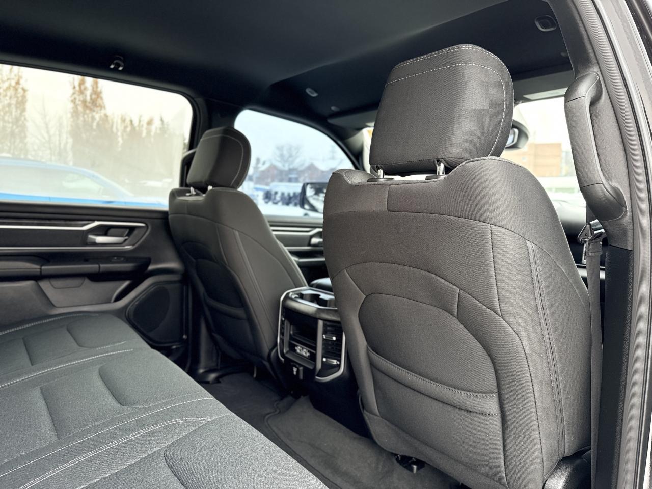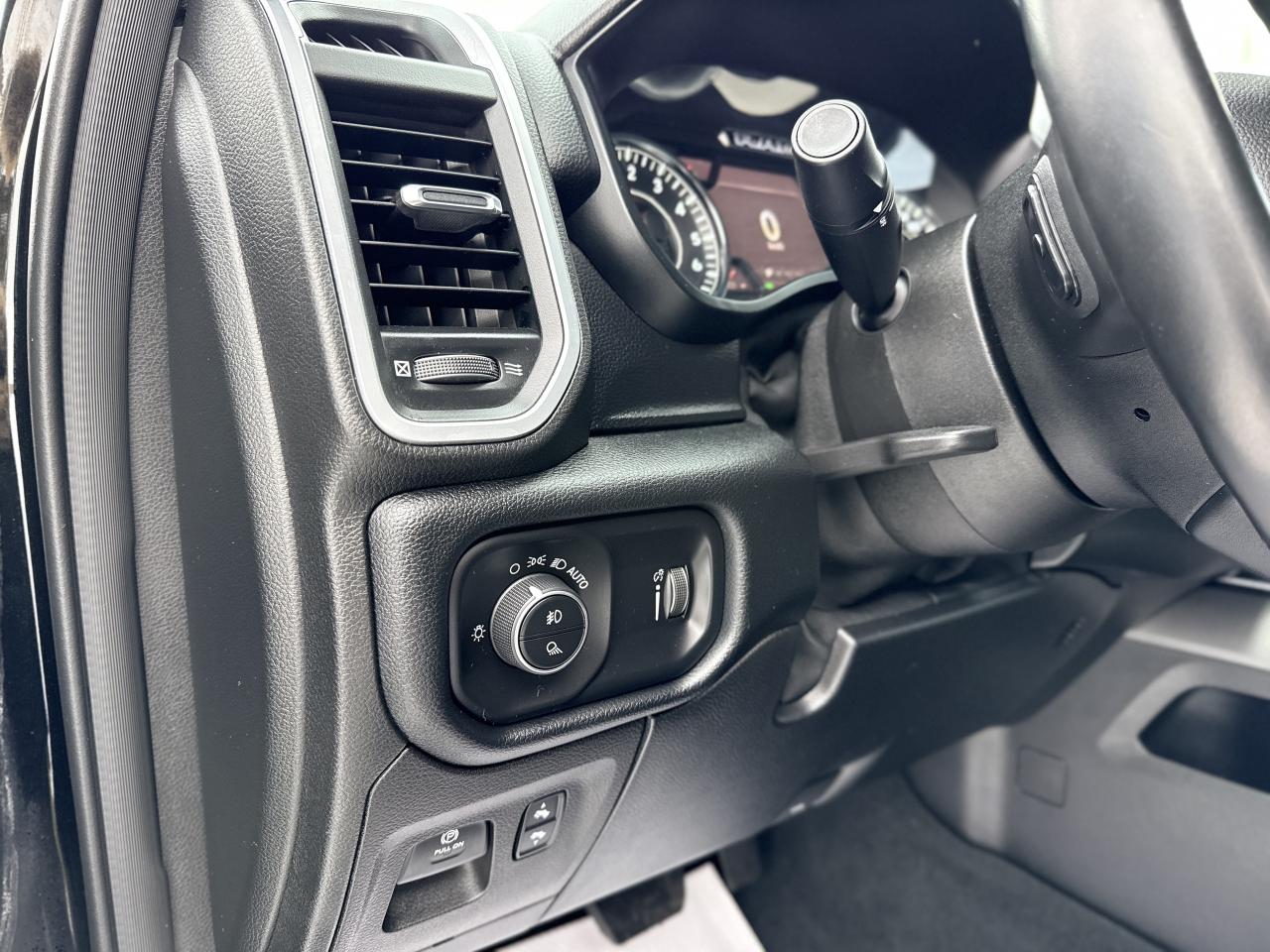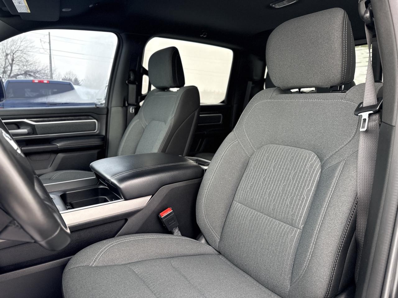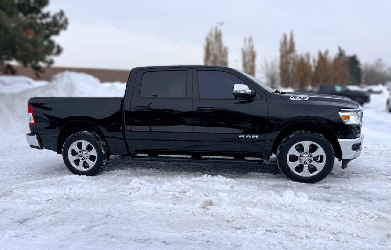 Our bold 2021 RAM 1500 Big Horn Crew Cab 4X4 makes a powerful impression in Diamond Black Crystal Pearl! Motivated by a 5.7 Litre HEMI V8 supplying 395hp connected to an 8 Speed Automatic transmission so you can tow or haul without breaking a sweat. This trail-friendly Four Wheel Drive truck also rewards you with responsive handling, and it achieves approximately 11.2L/100km on the highway. Take command of your challenges in style with our RAM's quad halogen headlights, fog lamps, a chrome grille, bright alloy wheels, running boards, a tonneau cover, a Class III hitch receiver, and bright bumpers.