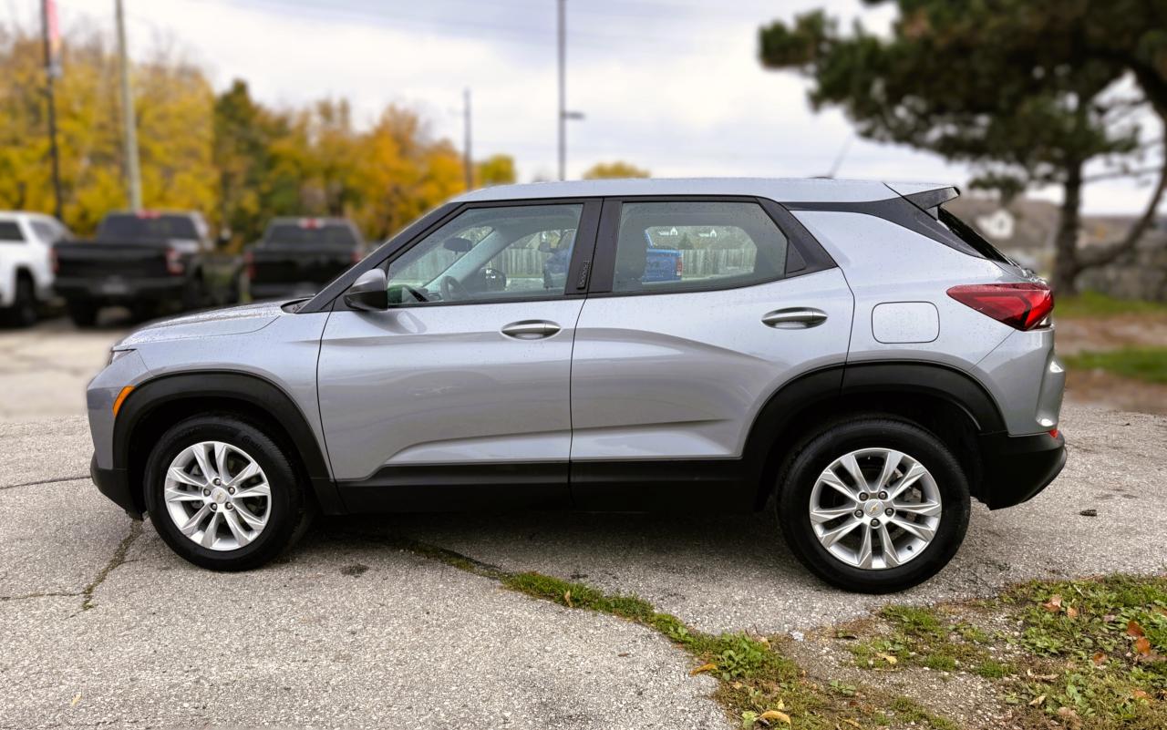 Fun to own, our Accident-Free 2023 Chevrolet Trailblazer LS has a fierce spirit and a sporty Sterling Gray Metallic design that come together in one bold SUV! Powered by a TurboCharged 1.2 Litre 3 Cylinder that provides 137hp paired to a CVT for pursuing your next adventure with ease. You can confidently move ahead in this Front Wheel Drive SUV and see approximately 7.6L/100km on the highway while riding in style. Our Trailblazer also makes a bold impression with signature LED lighting, black bumpers, silver-painted alloy wheels, and dark body moldings. It's an appealing appearance that SUV fans love.