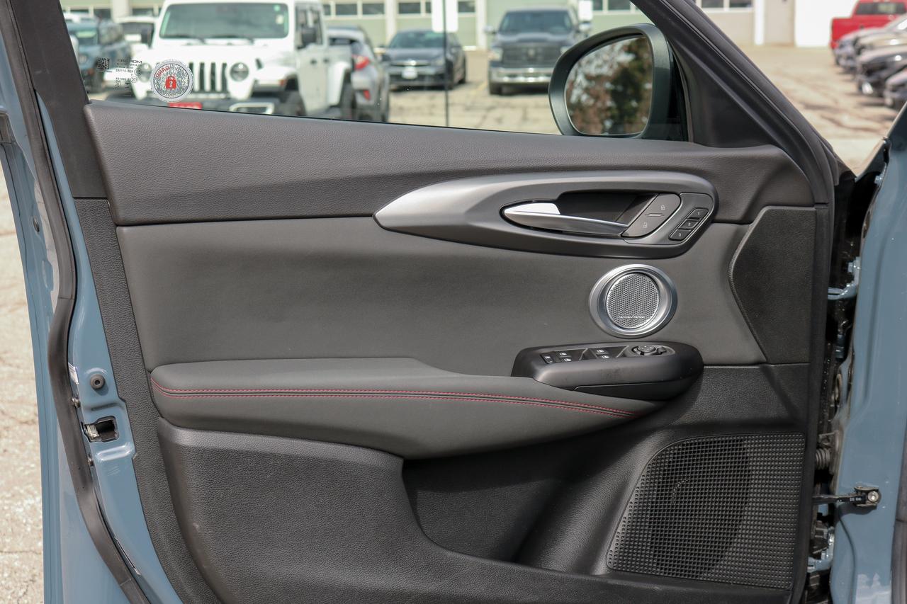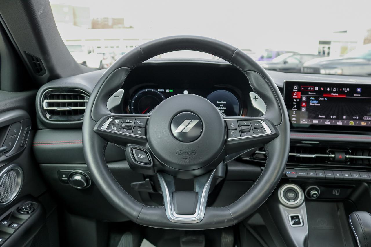 Our Low KM, Accident-Free 2024 Dodge Hornet R/T Plus AWD blends bold style and performance in Blue Steele! Powered by a TurboCharged 1.3 Litre 4 Cylinder and an Electric Motor supplying a combined 288hp to a paddle-shifted 6 Speed Aisin Automatic transmission. Engage PowerShot for maximum acceleration and hold onto the corners with Brembo brakes and a KONI selective damping suspension. This All Wheel Drive SUV also features plug-in capability for approximately 32 miles of EV travel, then switches to gas-hybrid mode to keep on going. Our Hornet's dramatic design delivers a dynamic GT grille, LED lighting, a power sunroof, a hands-free liftgate, alloy wheels, and heated power-folding mirrors.