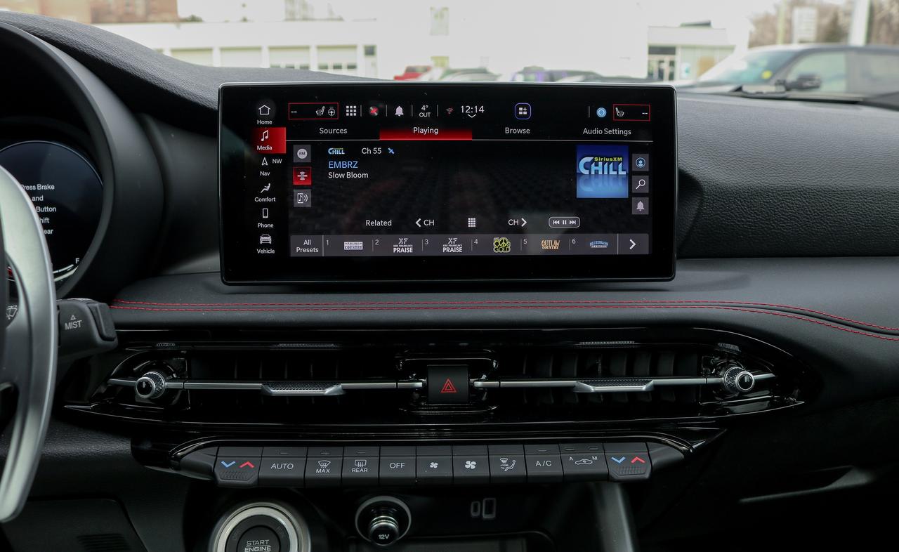 Elevated comfort is standard in our R/T Plus cabin with heated/ventilated leather power front seats, a heated TechnoLeather steering wheel, dual-zone temperature control, keyless access/ignition, and remote start. High-tech infotainment highlights include a 12.3-inch driver display, a 10.25-inch touchscreen, full-color navigation, wireless charging, WiFi compatibility, Apple CarPlay®/Android Auto®, and Bluetooth®.