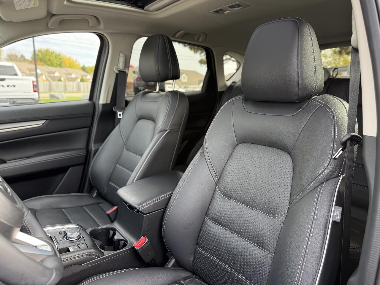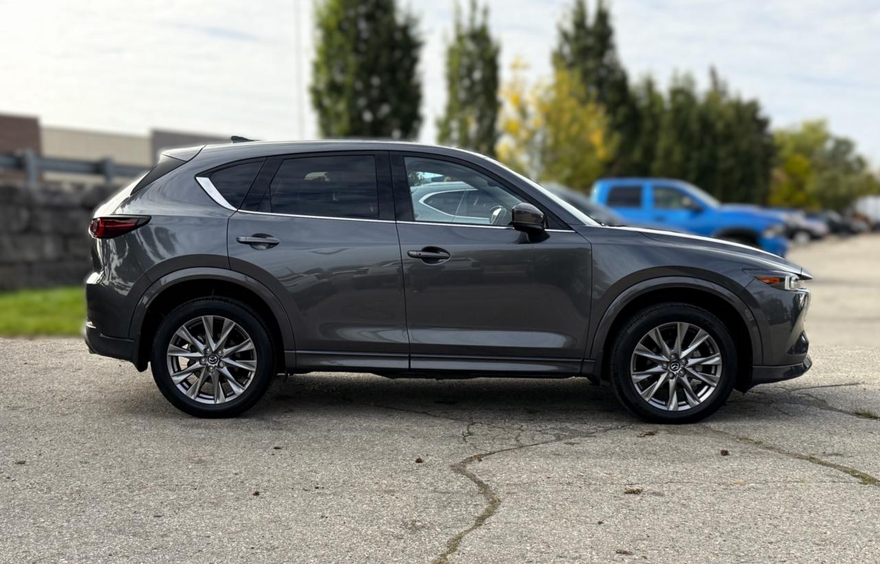 Our amazing One Owner, Accident-Free 2024 Mazda CX-5 GT AWD stands out from the crowd with an exquisitely sculpted Dark Grey design. Motivated by a 2.5 Litre 4 Cylinder providing 187hp connected to a 6 Speed Automatic transmission for responsive performance. This All Wheel Drive SUV also has G Vectoring Control Plus for premium handling, and it achieves approximately 7.8L/100km on the highway. The sophisticated design of our Mazda CX-5 gives it a distinctive appearance with a power sunroof, LED lighting, bright-tipped dual exhaust outlets, alloy wheels, a rear roof spoiler, and a power liftgate.