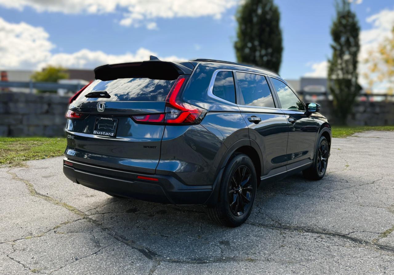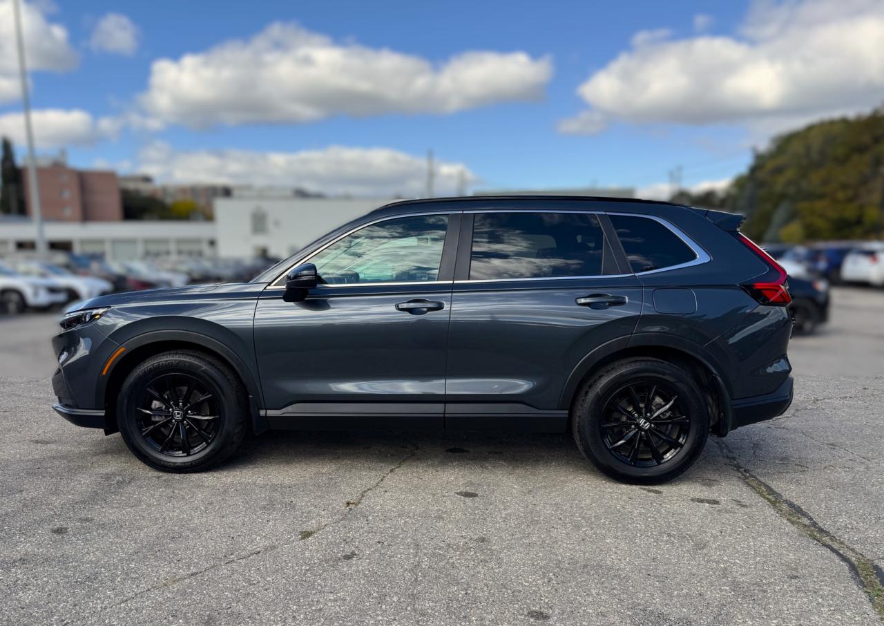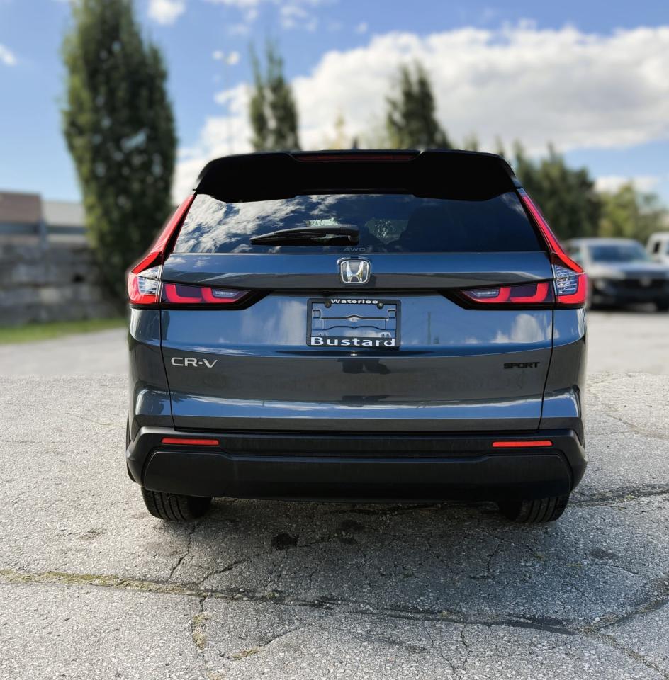 Ready to shine bright, our One Owner, Accident-Free, Low KM 2025 Honda CR-V Sport AWD helps you master busy days with a bold Meteoroid Grey Metallic design! Powered by a TurboCharged 1.5 Litre 4 Cylinder offering 190hp connected to a CVT with a multimode drive system. This All Wheel Drive SUV also features sure-footed handling for keeping on the move, and it achieves approximately 7.6L/100km on the highway for long road trips. A power sunroof, LED lighting, a power liftgate, black roof rails, and black alloy wheels help our CR-V attract attention whether you're in town or on the trail.