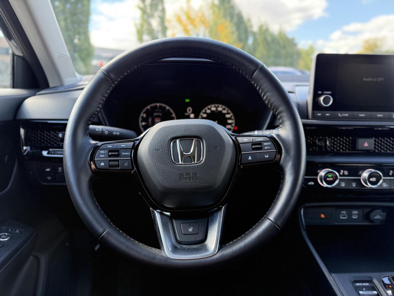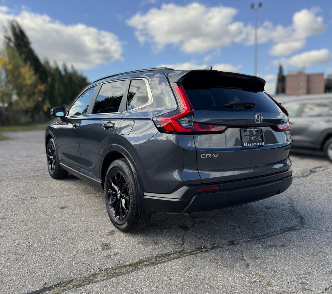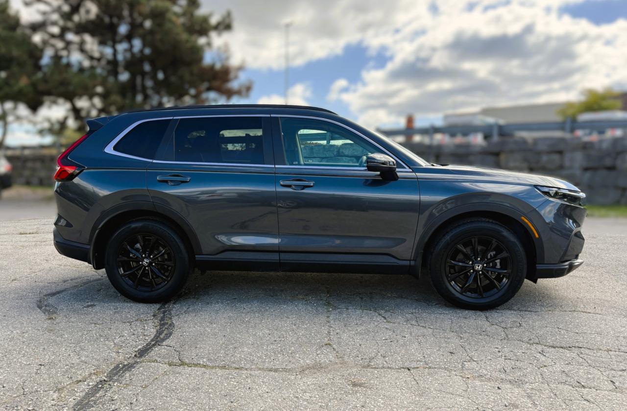 Ready to shine bright, our One Owner, Accident-Free, Low KM 2025 Honda CR-V Sport AWD helps you master busy days with a bold Meteoroid Grey Metallic design! Powered by a TurboCharged 1.5 Litre 4 Cylinder offering 190hp connected to a CVT with a multimode drive system. This All Wheel Drive SUV also features sure-footed handling for keeping on the move, and it achieves approximately 7.6L/100km on the highway for long road trips. A power sunroof, LED lighting, a power liftgate, black roof rails, and black alloy wheels help our CR-V attract attention whether you're in town or on the trail.