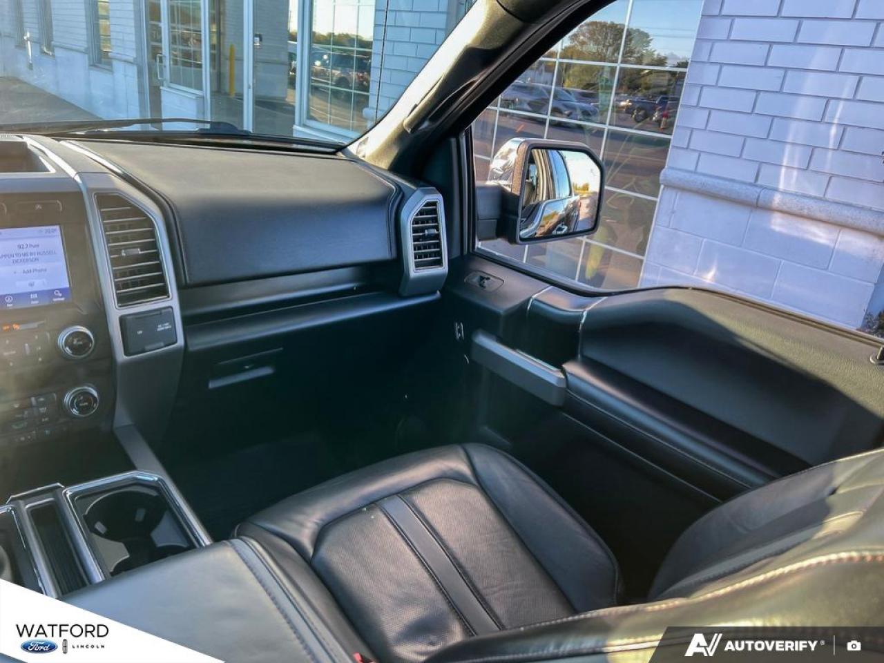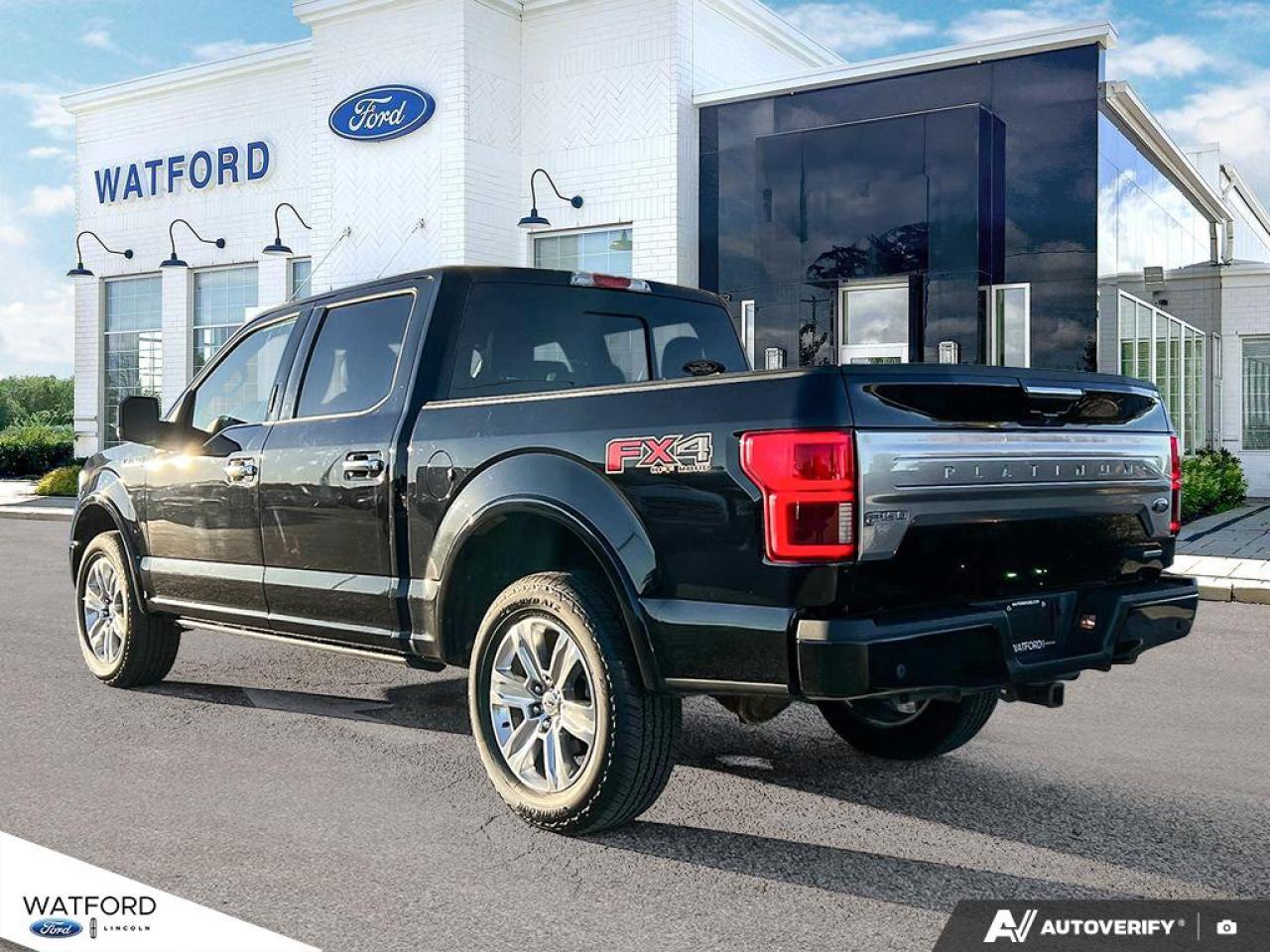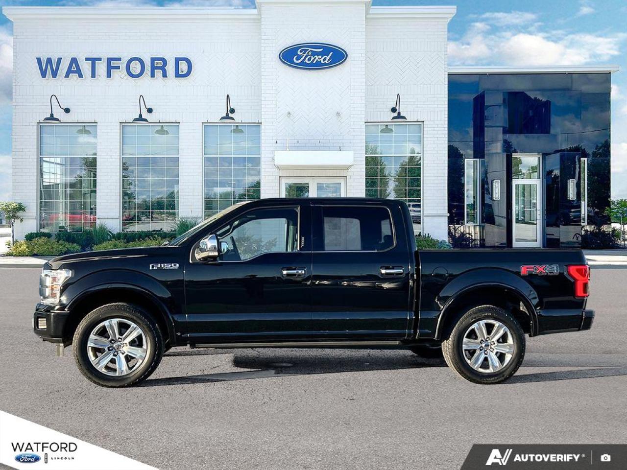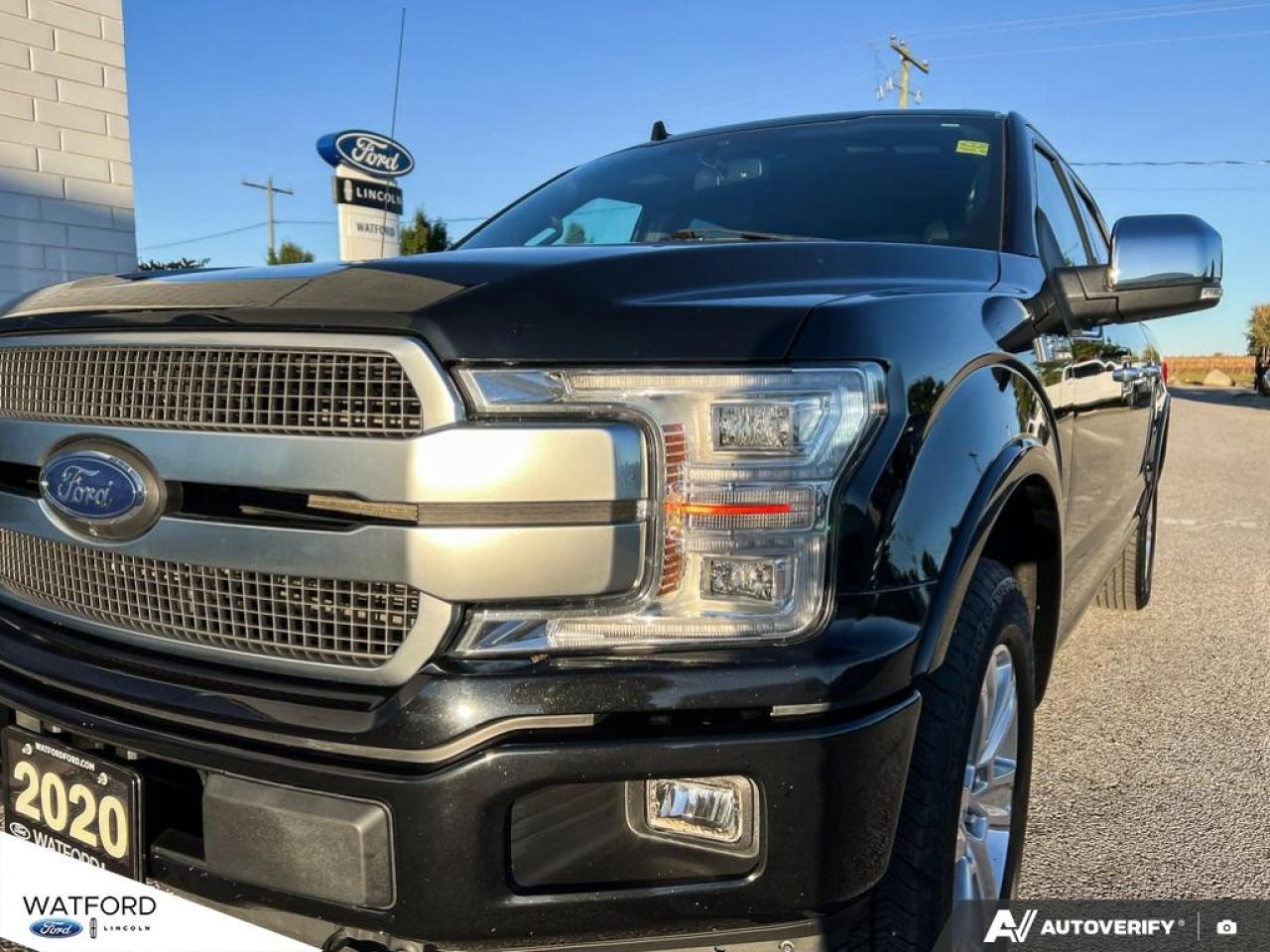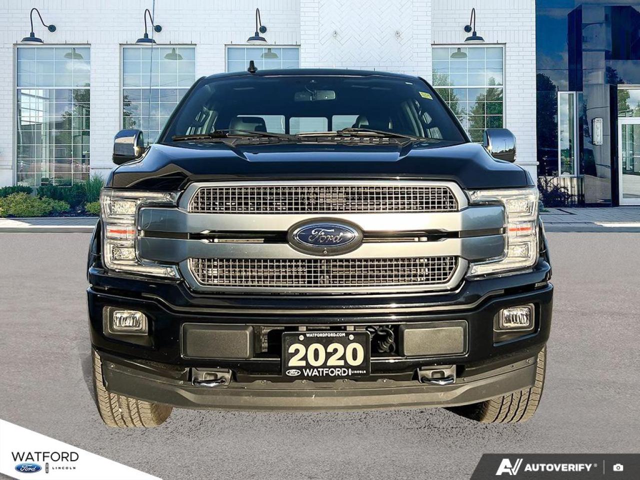 Experience the perfect blend of power, luxury, and reliability with the 2020 Ford F-150 Platinum 4WD SuperCrew 5.5' Box, available now at Watford Ford in Watford. This one-owner truck, as confirmed by CARFAX Canada, boasts a bold black exterior and interior, automatic transmission, and an impressive 3.5 L gas engine. With only 129,047 km on the odometer, this F-150 Platinum is ready for your toughest jobs and daily drives alike.