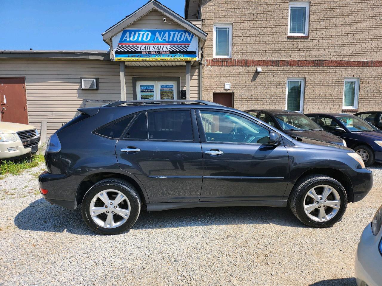 2008 Lexus RX 400h V6 Hybrid Well kept, EXTRA clean inside and out. Timing has been done at 350000 km. Lots of maintenance work has been performed. Black exterior on Black leather interior, heated seats, sunroof and much more. Runs and drives excellent with no issues at all. This vehicle comes certified with all-in pricing excluding HST tax and licensing. Also included is a complimentary One Year Powertrain warranty. Can be upgraded up to 4 years with additional charge. WE ACCEPT DEBIT/VISA/MASTERCARD/AMEX. PLEASE VISIT www.autonationcarsale.caPROUD MEMBER OF OMVIC & UCDA. BUY WITH CONFIDENCE Trade-in's are welcome. AUTO NATION CAR SALES is Located at 9300 TECUMSEH RD. EAST, WINDSOR, ON N8R 1A2 Open 6 days a week Sunday by appointment only. Please CALL at 226 two four six 2429 for further information. JTJHW31U082850115