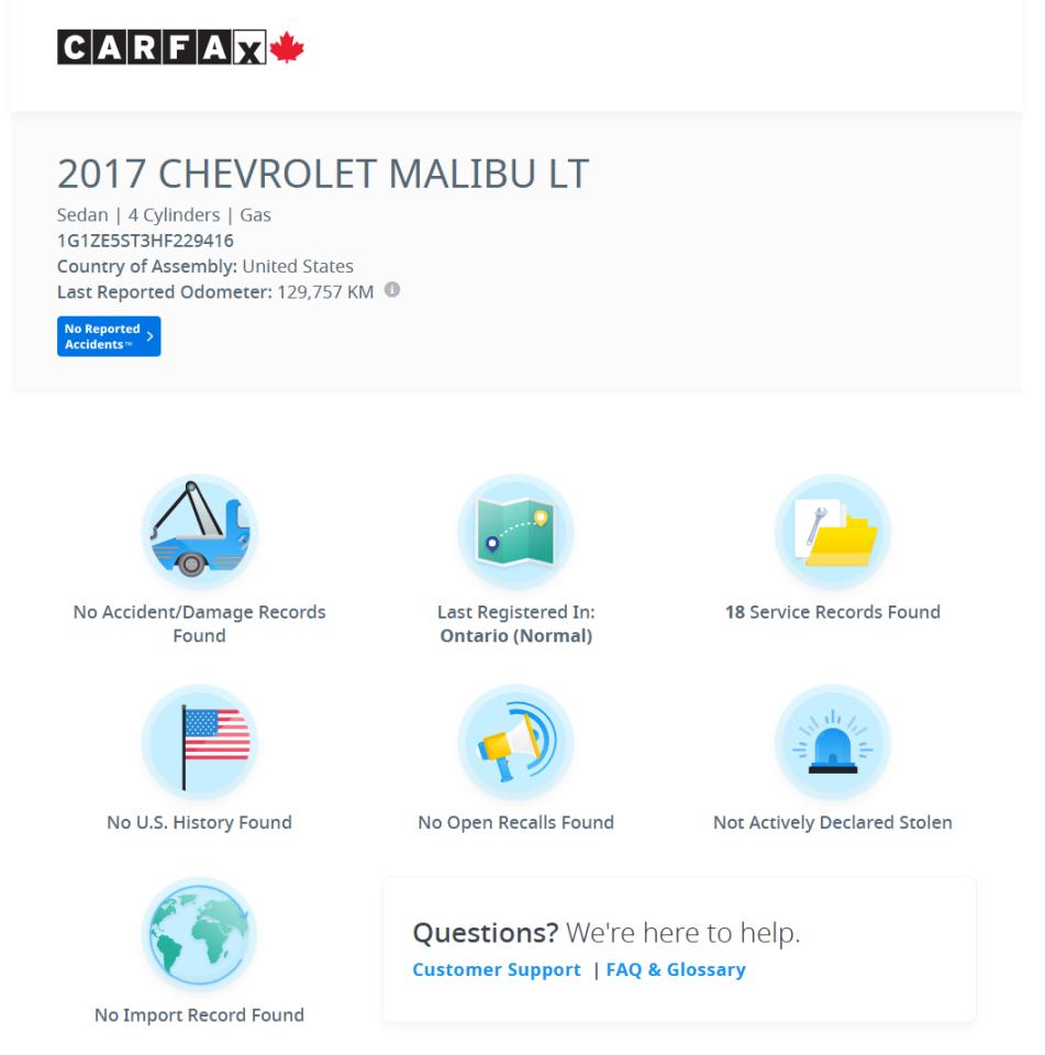 9.    Carfax History Verified Report