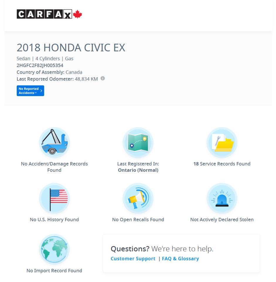 9.    Carfax History Verified Report