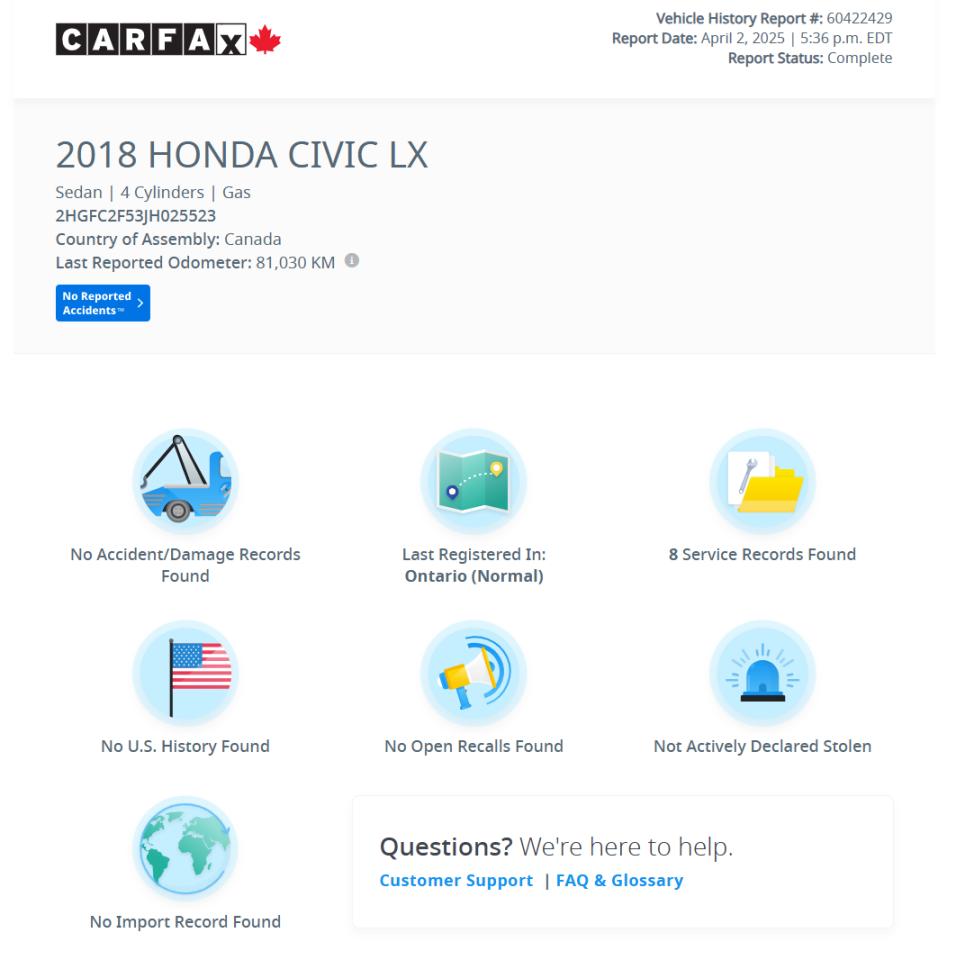 9.    Carfax History Verified Report