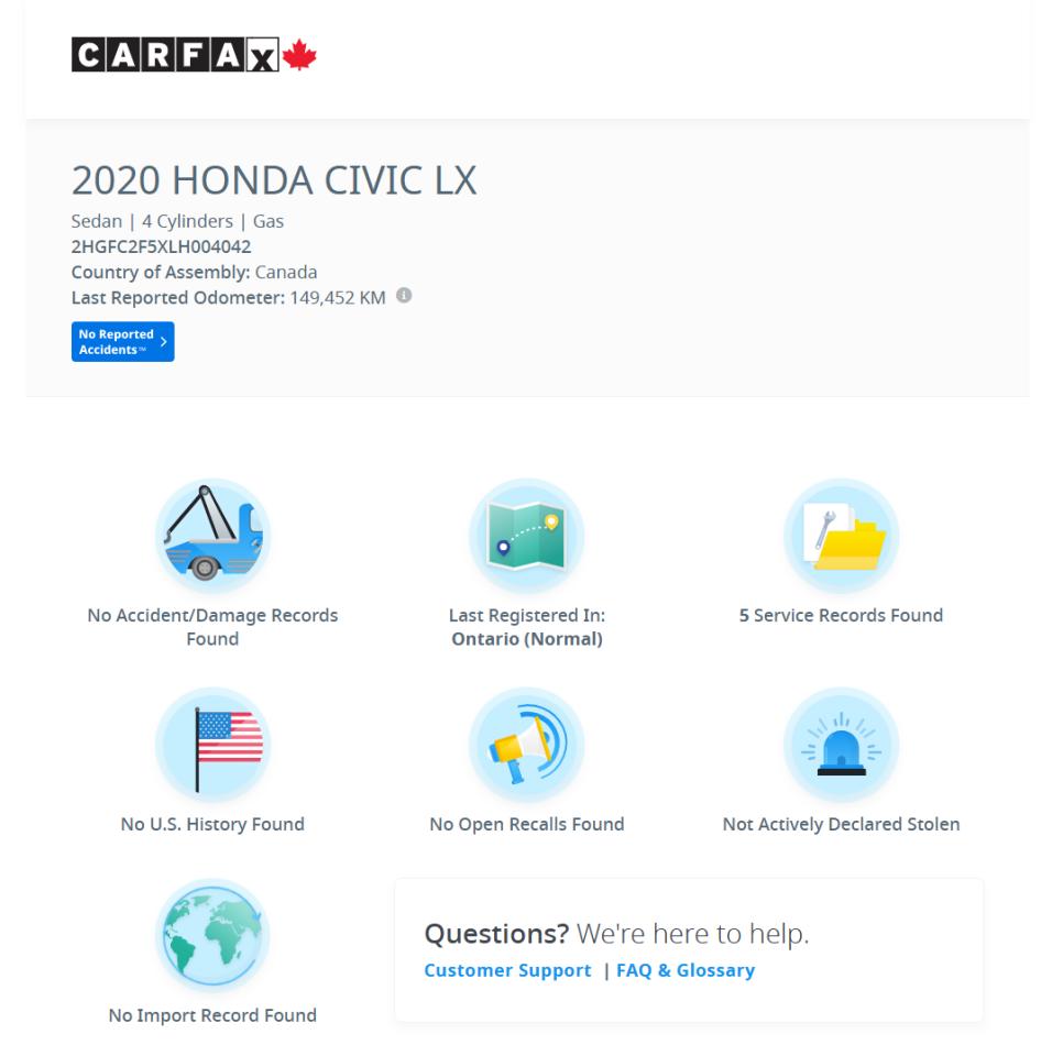 9.    Carfax History Verified Report