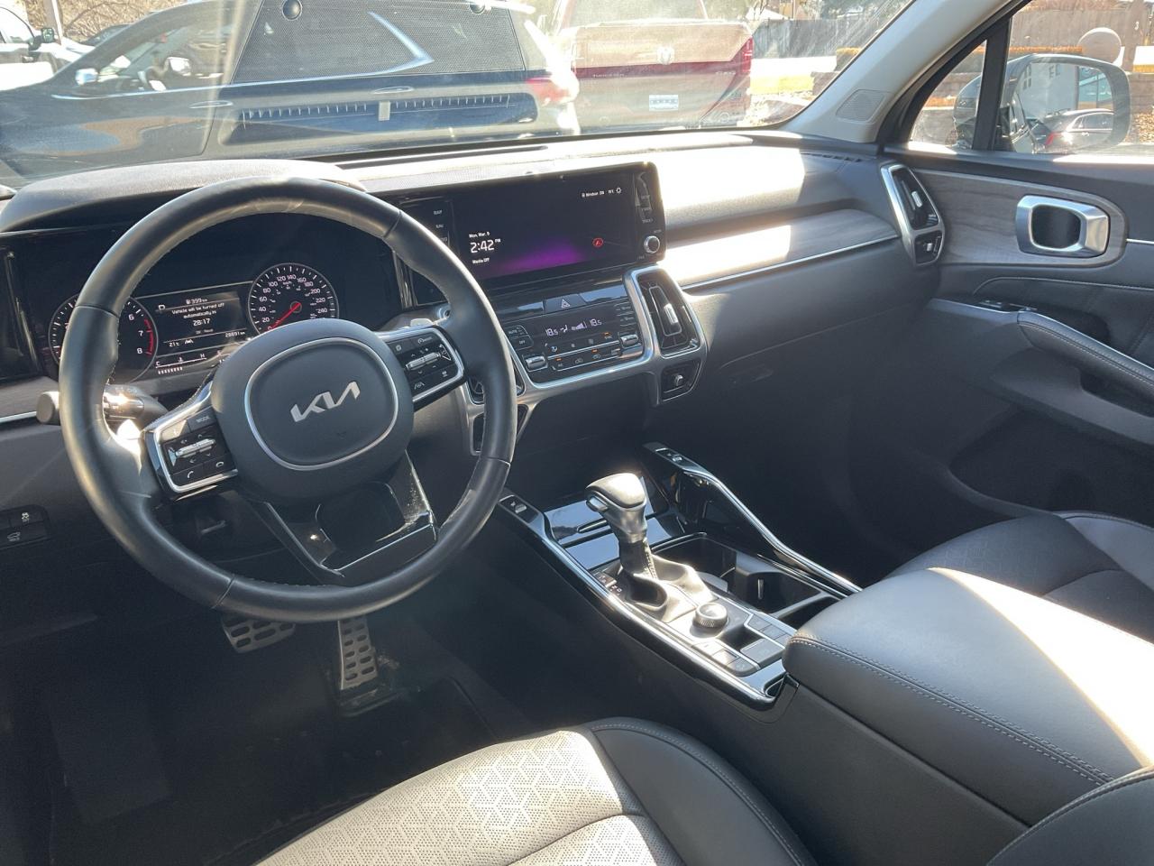 Odometer is 4961 kilometers below market average!Black 2023 Kia Sorento EX AWD 8-Speed DCT 2.5L I4 DGI Turbocharged DOHC 16V LEV3-ULEV70 281hp**CARPROOF CERTIFIED**, **NEW TIRES**, **NEW BRAKES**, **ONE OWNER**, AWD.* PLEASE SEE OUR MAIN WEBSITE FOR MORE PICTURES AND CARFAX REPORTS * Buy in confidence at WINDSOR CHRYSLER with our 95-point safety inspection by our certified technicians. Searching for your upgrade has never been easier. You will immediately get the low market price based on our market research, which means no more wasted time shopping around for the best price, Its time to drive home the most car for your money today. OVER 100 Pre-Owned Vehicles in Stock! Our Finance Team will secure the Best Interest Rate from one of out 20 Auto Financing Lenders that can get you APPROVED! Financing Available For All Credit Types! Whether you have Great Credit, No Credit, Slow Credit, Bad Credit, Been Bankrupt, On Disability, Or on a Pension, we have options. Looking to just sell your vehicle? We buy all makes and models let us buy your vehicle. Proudly Serving Windsor, Essex, Leamington, Kingsville, Belle River, LaSalle, Amherstburg, Tecumseh, Lakeshore, Strathroy, Stratford, Leamington, Tilbury, Essex, St. Thomas, Waterloo, Wallaceburg, St. Clair Beach, Puce, Riverside, London, Chatham, Kitchener, Guelph, Goderich, Brantford, St. Catherines, Milton, Mississauga, Toronto, Hamilton, Oakville, Barrie, Scarborough, and the GTA.