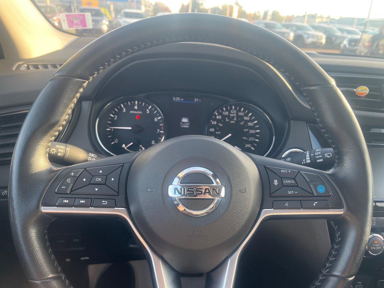 This 2023 Qashqai SV includes a host of extras: integrated remote start, a sunroof, heated seats and steering wheel, dual-zone automatic climate control, proximity access/pushbutton start, upgraded 6-speaker audio, and satellite radio compatibility. There's a lot more standard equipment, including blind spot monitoring, rear cross traffic alert, intelligent rear emergency braking with rear sonar, lane departure warning. The list keeps going, with alloy wheels, cruise control, a rearview camera, Bluetooth, and LED lighting.