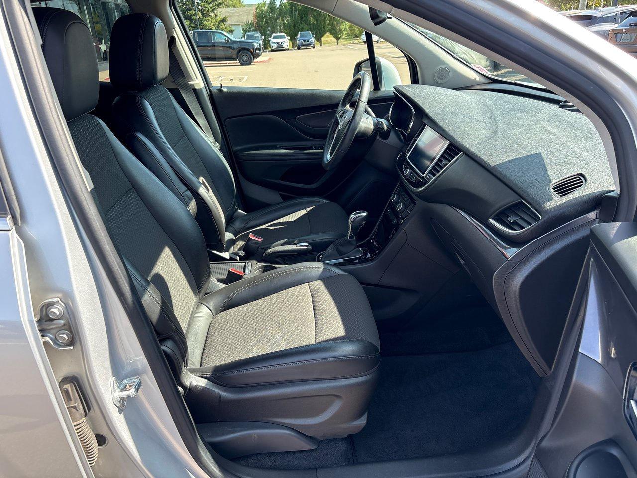 This affordable Encore includes a rearview camera, power driver's seat, Buick's QuietTuning system with active noise cancellation for a hushed cabin, a leather-wrapped steering wheel, and an 8-inch infotainment system with Apple CarPlay/Android Auto. There's a leather-wrapped steering wheel and 6-speaker audio, as well.
