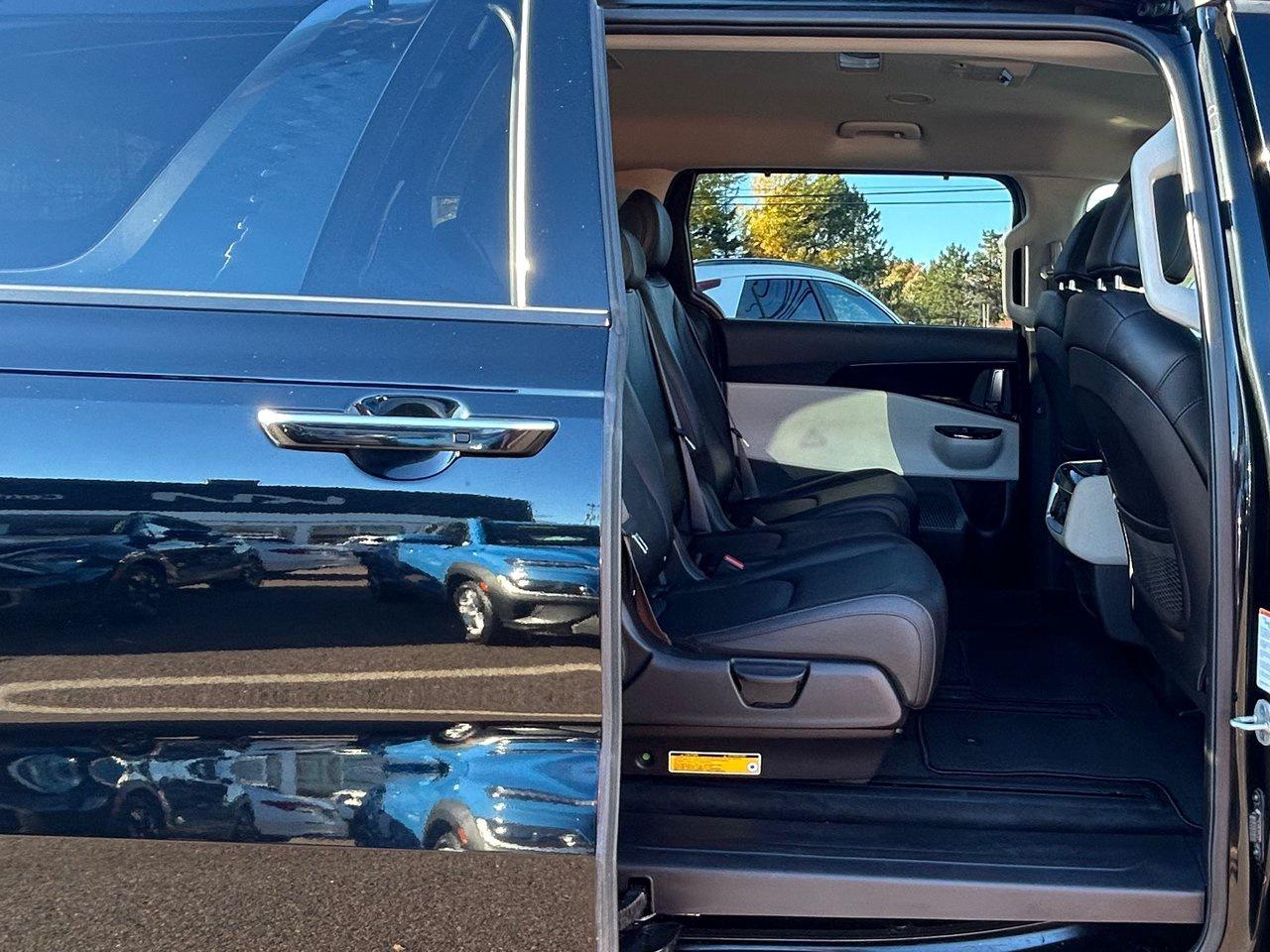 That's in addition to an extremely lengthy list of standard features: leather seats, 8-way power front seats, Highway Drive Assist, blind spot collision avoidance assist, front/rear parking sensors, and UVO Intelligence connected services. There are power sliding doors and a power liftgate, heated front seats and a heated steering wheel, integrated sunshades in both rear rows, proximity access/pushbutton start, and multi-zone automatic climate control. The Carnival offers so much more, from 19-inch machined-finish alloy wheels to lane keeping assist, auto high beams, Apple CarPlay/Android Auto, a heated windshield, and auto defog.