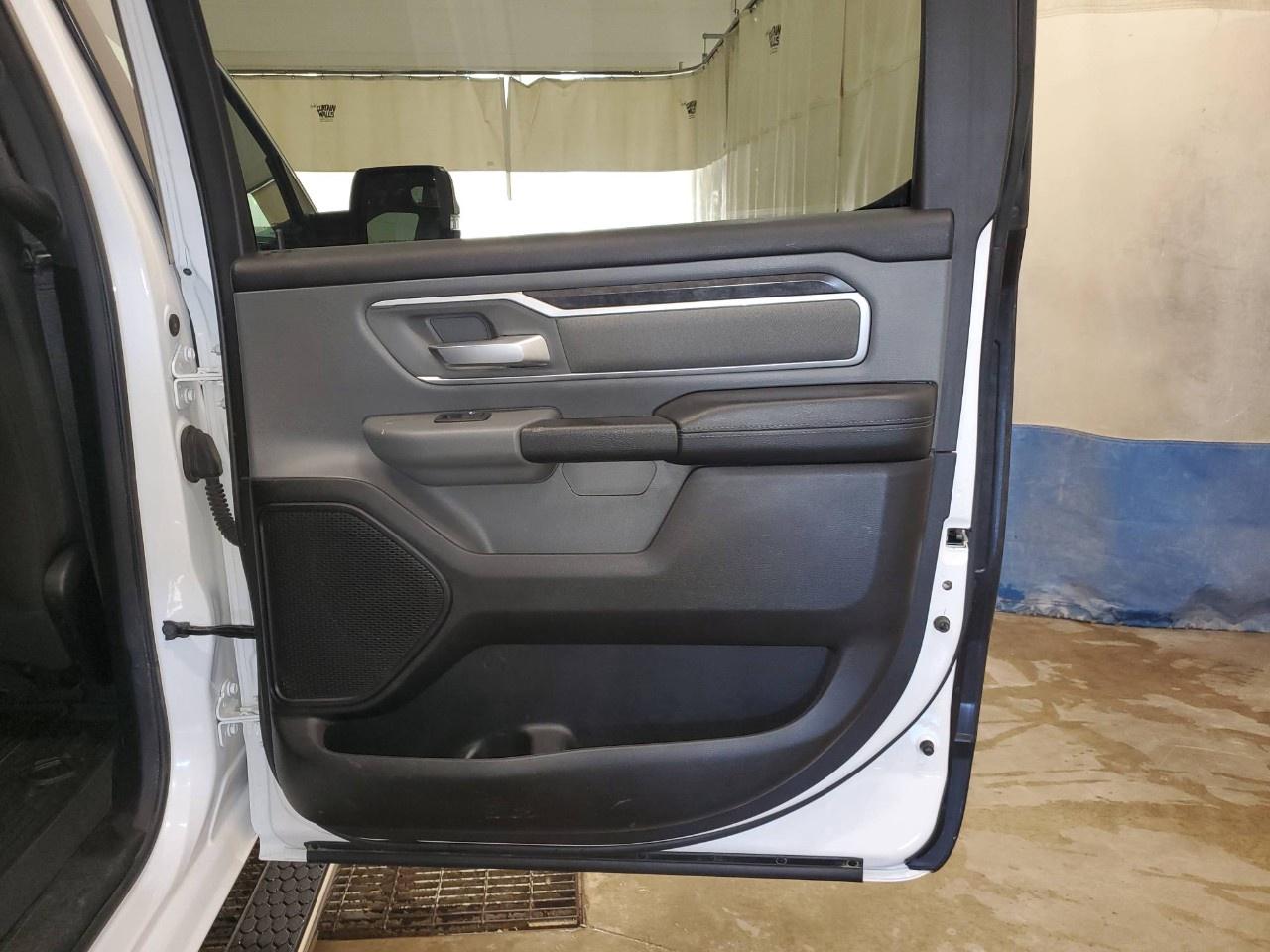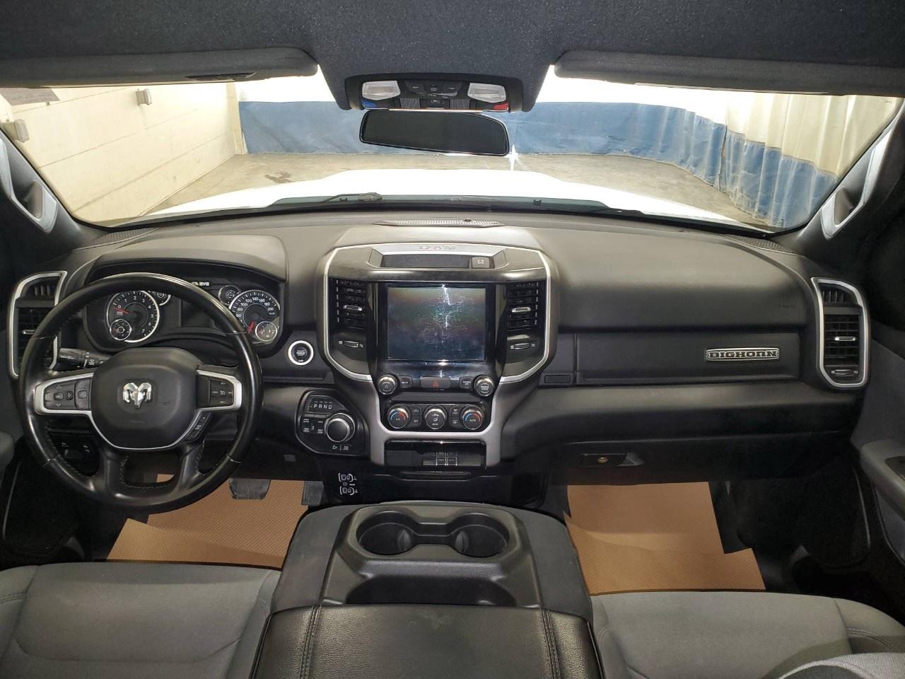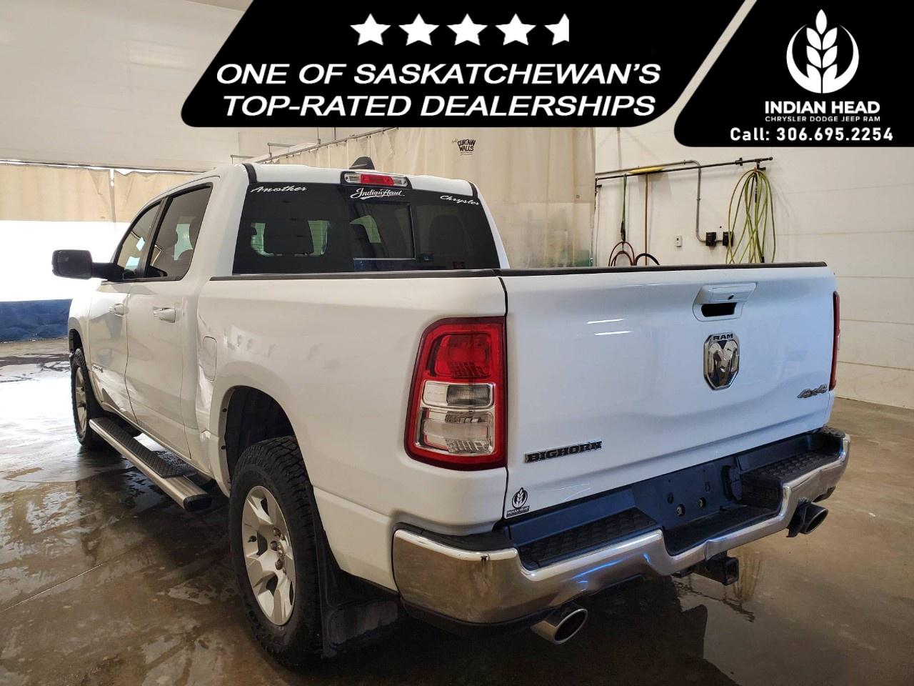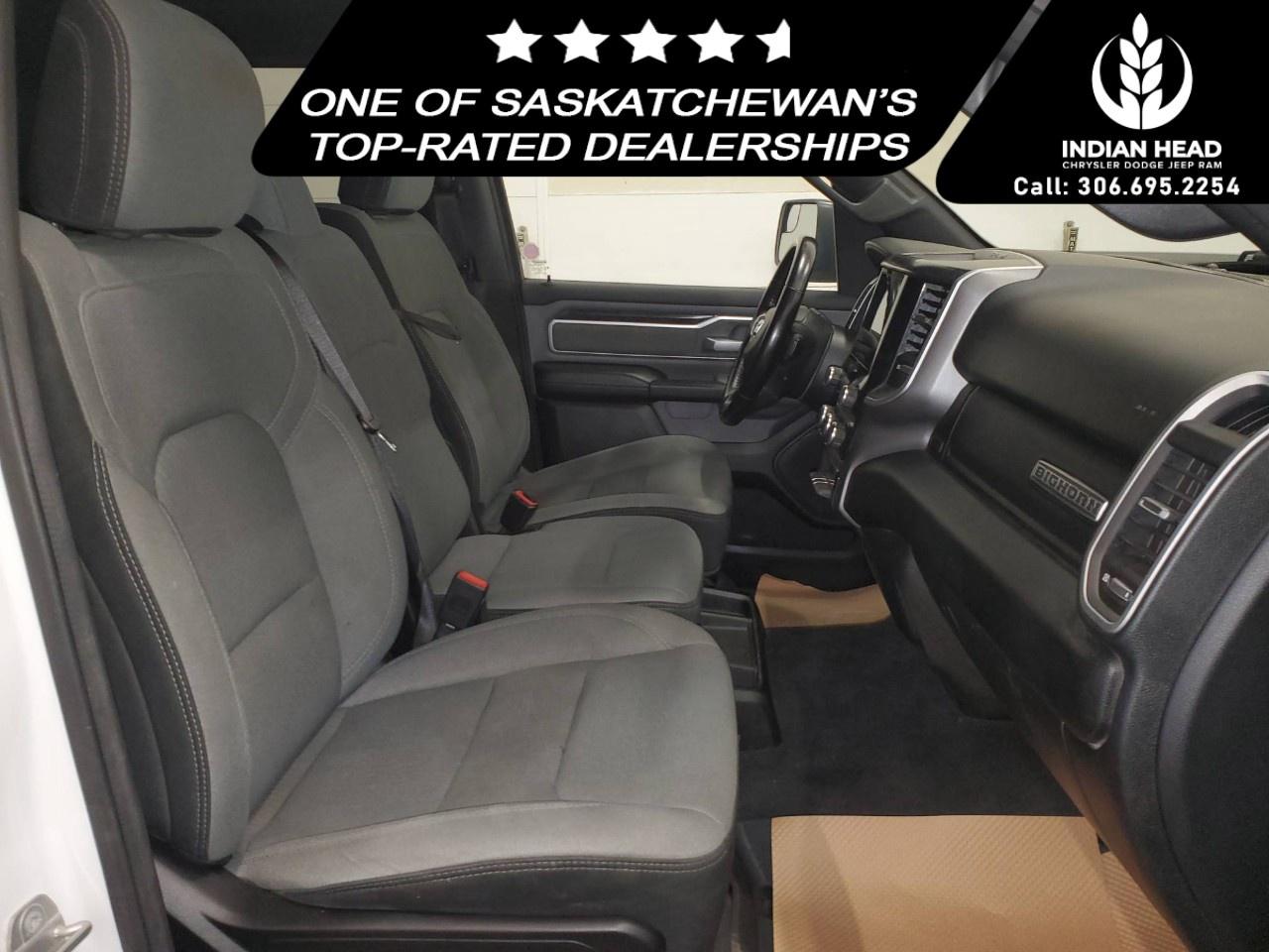 The 2022 Ram 1500 Big Horn 4x4 Crew Cab 5'7" Box in a classic white finish offers a robust and reliable driving experience with its capable 4×4 drivetrain and smooth handling. Perfect for those seeking both style and utility, this truck exudes confidence on and off the road.