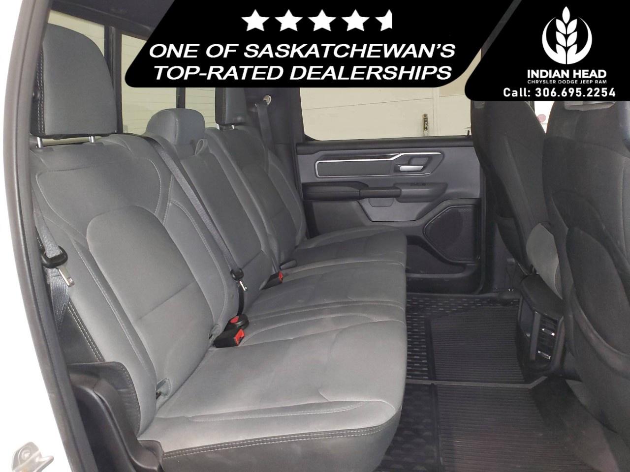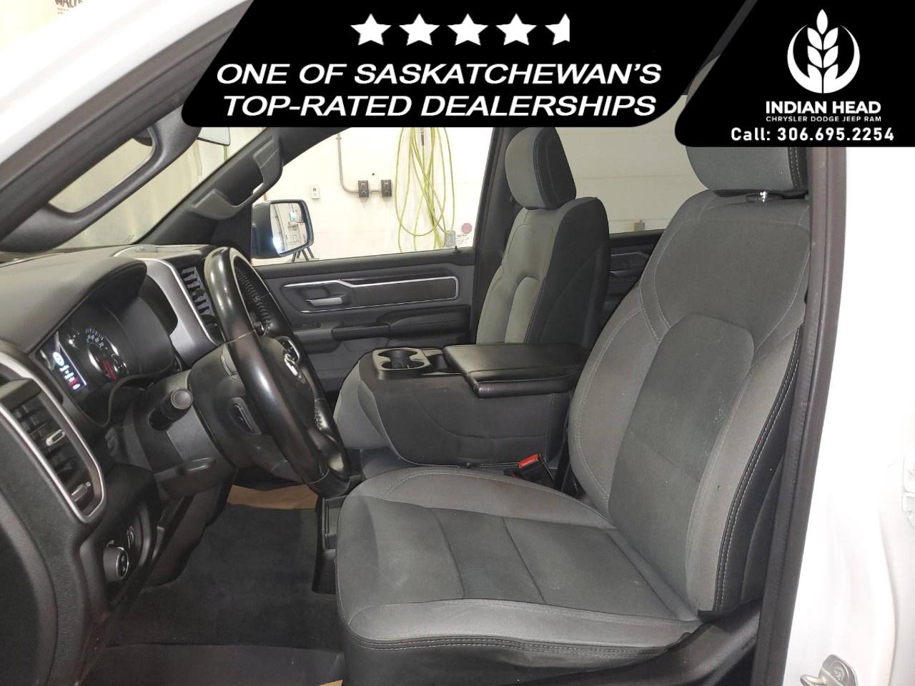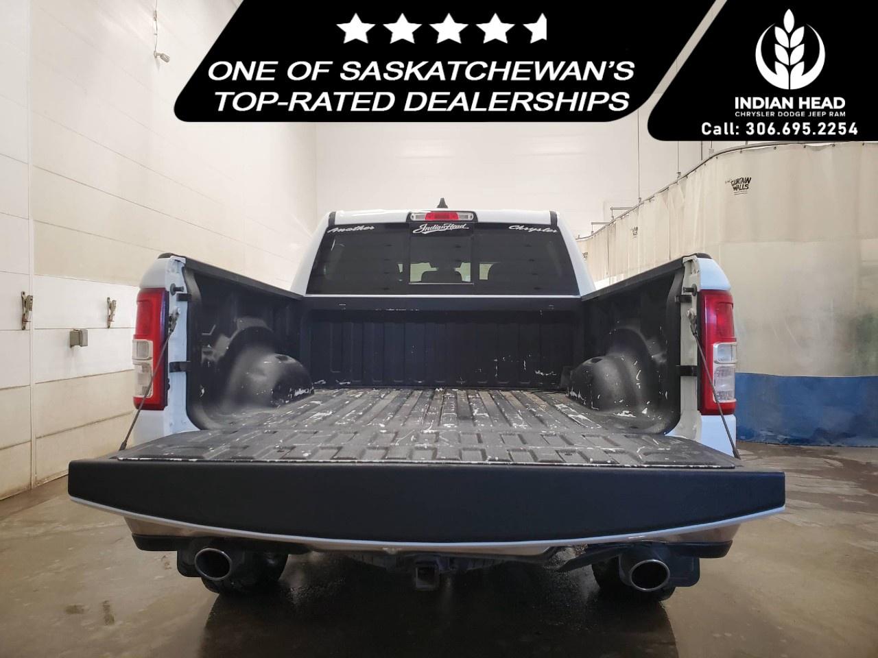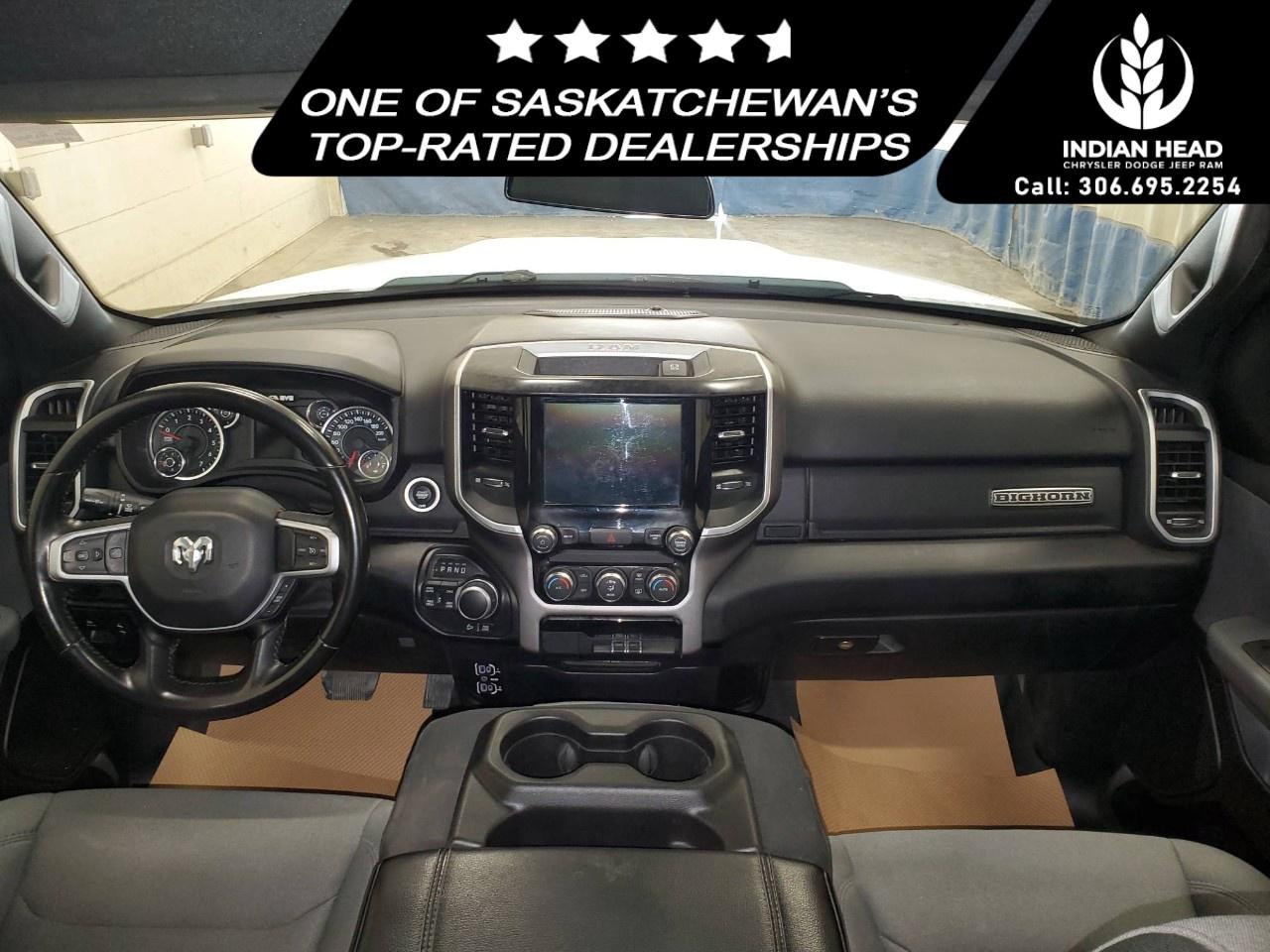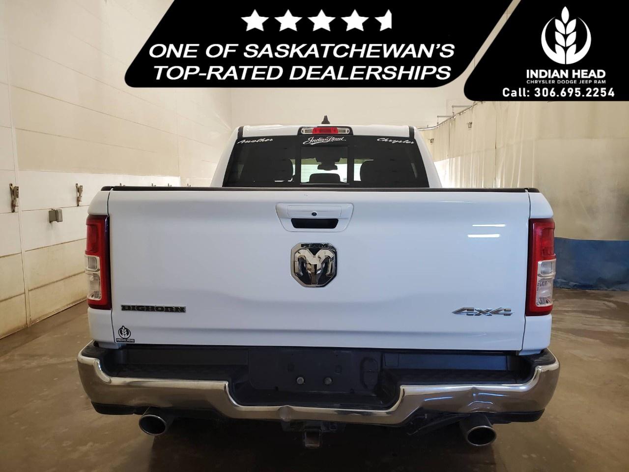 The 2022 Ram 1500 Big Horn 4x4 Crew Cab 5'7" Box in a classic white finish offers a robust and reliable driving experience with its capable 4×4 drivetrain and smooth handling. Perfect for those seeking both style and utility, this truck exudes confidence on and off the road.