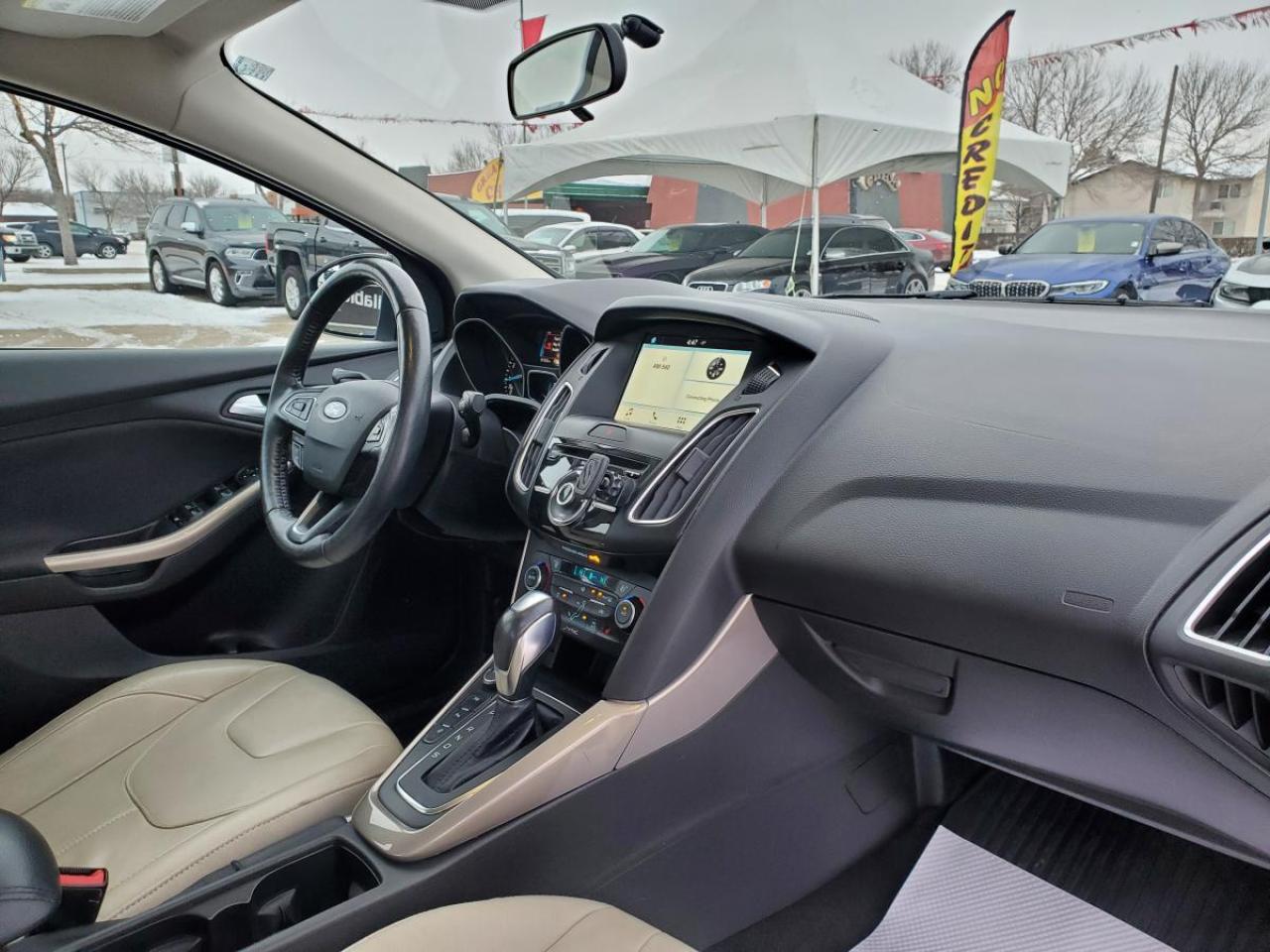 Now available at Platinum Auto Sport in Saskatoon, this 2016 Ford Focus Titanium offers exceptional value with luxury features, a sporty drive, and outstanding fuel efficiency. Finished in stunning Ruby Red Metallic paired with a classy beige leather interior, this top-trim Titanium model delivers the premium comfort and advanced technology that Saskatchewan drivers love.