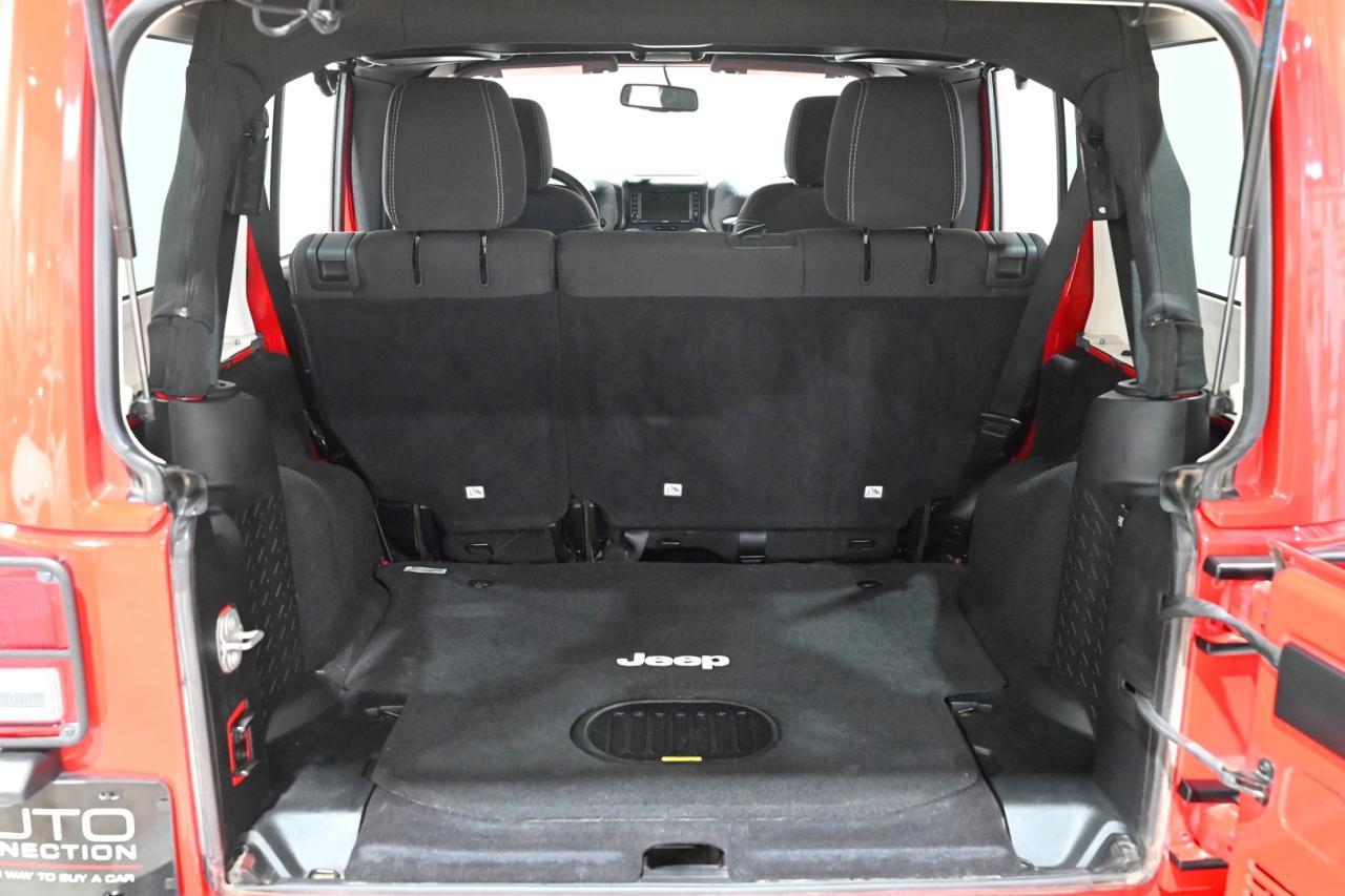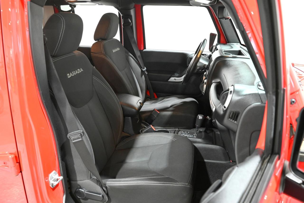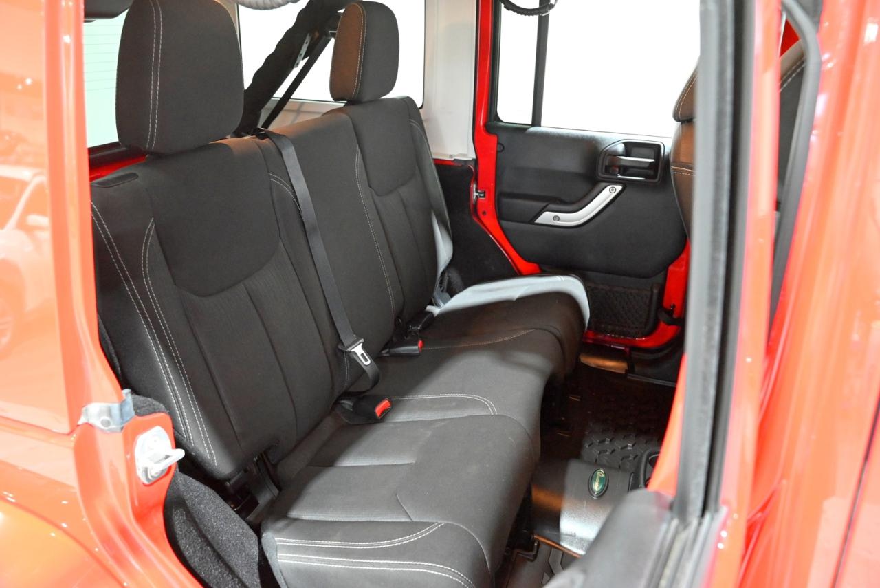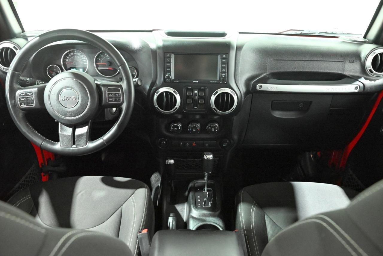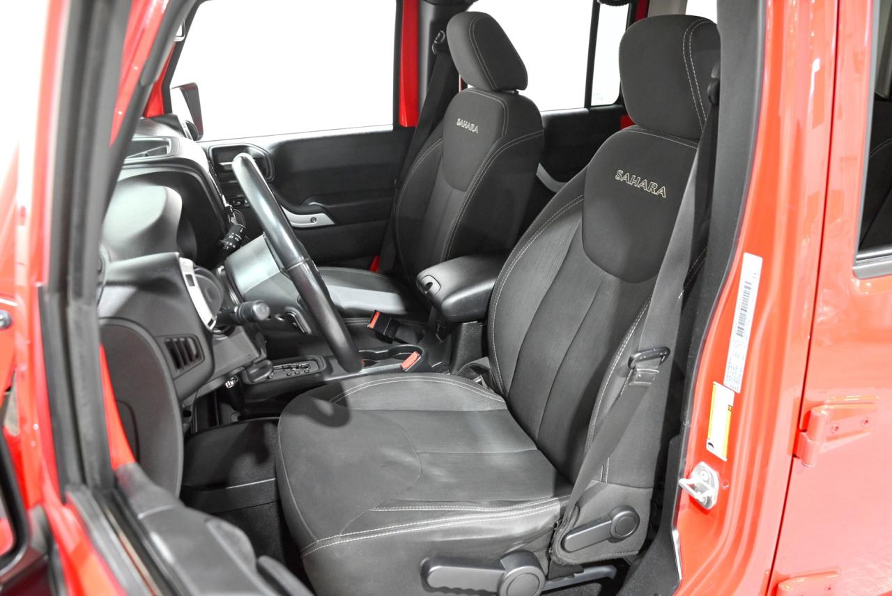Turn heads in this Firecracker Red 2017 Jeep Wrangler Unlimited Sahara - a Canadian-tough 4x4 that blends iconic, go-anywhere capability with comfortable everyday usability. Powered by the dependable 3.6L Pentastar V6 and showing 118,000 kilometers, this Sahara is built to handle Saskatchewan winters, weekend trips, and everything in between. The Dual Top Group gives you the best of both worlds with a body-colour Freedom Top hardtop and a Premium Black Sunrider soft top for open-air freedom whenever you want it. Inside you will find a driver-focused cabin with the Radio 430N 6.5-inch touchscreen, GPS navigation, an 8-speaker Alpine premium sound system with subwoofer, SiriusXM, and the Connectivity Group to keep you linked on the road. Comfort and convenience are right where you need them - remote start, automatic climate control with air filtering, heated power mirrors, and a leather-wrapped steering wheel and shift knob make daily life easier. Safety and utility features like fog lamps, an auto-dimming rearview mirror, an electronic vehicle information centre, and a 115V outlet add thoughtful touches that pay off on- and off-road. Finished on 18-inch 7-spoke polished aluminum wheels and kept locally in Saskatchewan, this Wrangler comes from a climate that proves its durability and care. Stop by Saskatoon Auto Connection to see how this bold, capable Sahara fits your lifestyle - it is ready for your next adventure and a test drive today will show you why Jeep fans keep coming back.