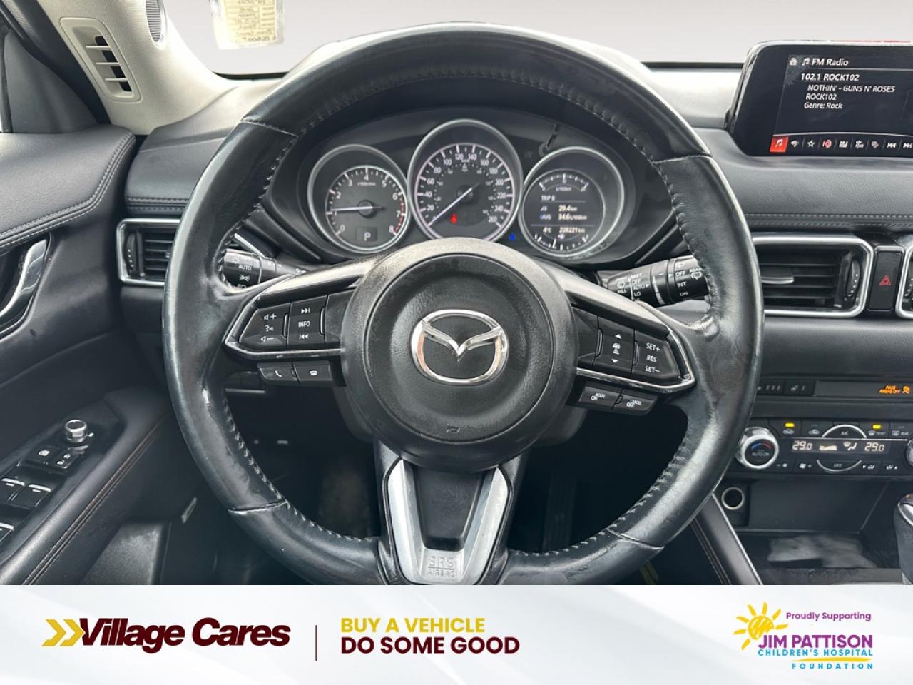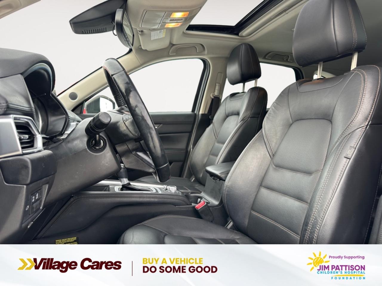 Our CX-5's trim level is GT. This top of the line trim comes with a power liftgate, heated leather seats, LED front headlights, larger aluminum wheels, a 7 inch colour touch screen with MAZDA CONNECT, Bose premium audio system and a rear view camera. Additional features include advanced blind spot monitoring, smart city brake support, remote keyless entry with push button start, cruise control and a heated-leather steering wheel. For the ultimate in luxury, this GT trim also comes with a power sunroof, fully automatic and directionally adaptive headlights, dual zone automatic climate control, hands free proximity keys and built in navigation.