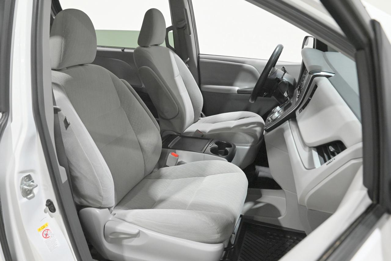 Meet this clean, locally owned 2018 Toyota Sienna LE in Alpine White - a practical, family-ready minivan that has been regularly maintained since new and is local to Saskatchewan. Powered by a strong 3.5L V6 and riding on 17-inch aluminum alloy wheels, it delivers confident highway passing and smooth everyday driving for eight passengers. The cabin welcomes you with light grey fabric seating for eight, a power-adjustable driver's seat and heated front seats that make cold Saskatchewan mornings a lot more comfortable. Smart conveniences like dual power-sliding side doors, split-and-stow third-row seating, tri-zone automatic climate control and a handy 120V outlet keep family life organized and comfortable on long trips. Navigation, an 8-inch touchscreen with Entune 3.0, Bluetooth hands-free connectivity, SiriusXM and USB/AUX inputs mean everyone stays connected and entertained. Toyota's advanced safety suite (Toyota Safety Sense) - including Dynamic Radar Cruise Control, Lane Departure Alert with Steering Assist, Pre-Collision with Pedestrian Detection, Automatic High Beams - helps you drive with added confidence. Practical touches like automatic projector headlamps, heated power mirrors, roof rails and a windshield wiper de-icer round out a well-equipped package built for Saskatchewan weather. Stop by Saskatoon Auto Connection to see this reliable Sienna LE in person and discover why its combination of space, safety and thoughtful features makes it a smart choice for busy families.