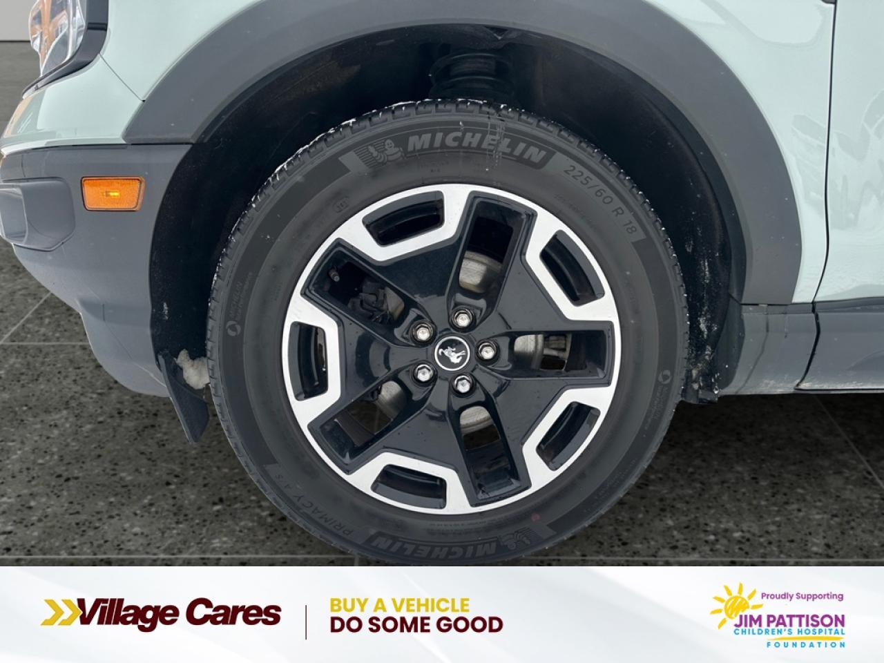 Our Bronco Sport's trim level is Outer Banks. Stepping up to this Bronco Sport Outer Banks package is a great choice as it includes leather heated front seats, a leather wrapped and heated steering wheel, unique aluminum wheels, a reverse sensing system, a proximity key with push button start and power seats. It also includes LED accent lighting, Co-Pilot360, a useful flip-up rear window, fog lamps, automatic climate control and heated side mirrors. On the inside, it features a SYNC 3 infotainment system with an 8 inch touchscreen and is paired with Apple CarPlay and Android Auto, a smart charging USB port, 60/40 split-fold rear seats, remote keyless entry, FordPass Connect. It helps keep you safe with lane keeping assist, automatic emergency braking, blind spot monitoring and rear cross traffic alert.